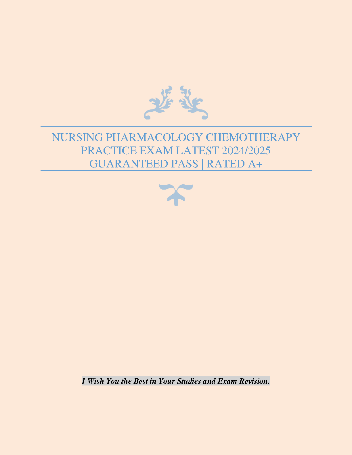 ace your nursing pharmacology chemotherapy exam with this comprehensive practice exam, updated for the 2024/2025 academi...