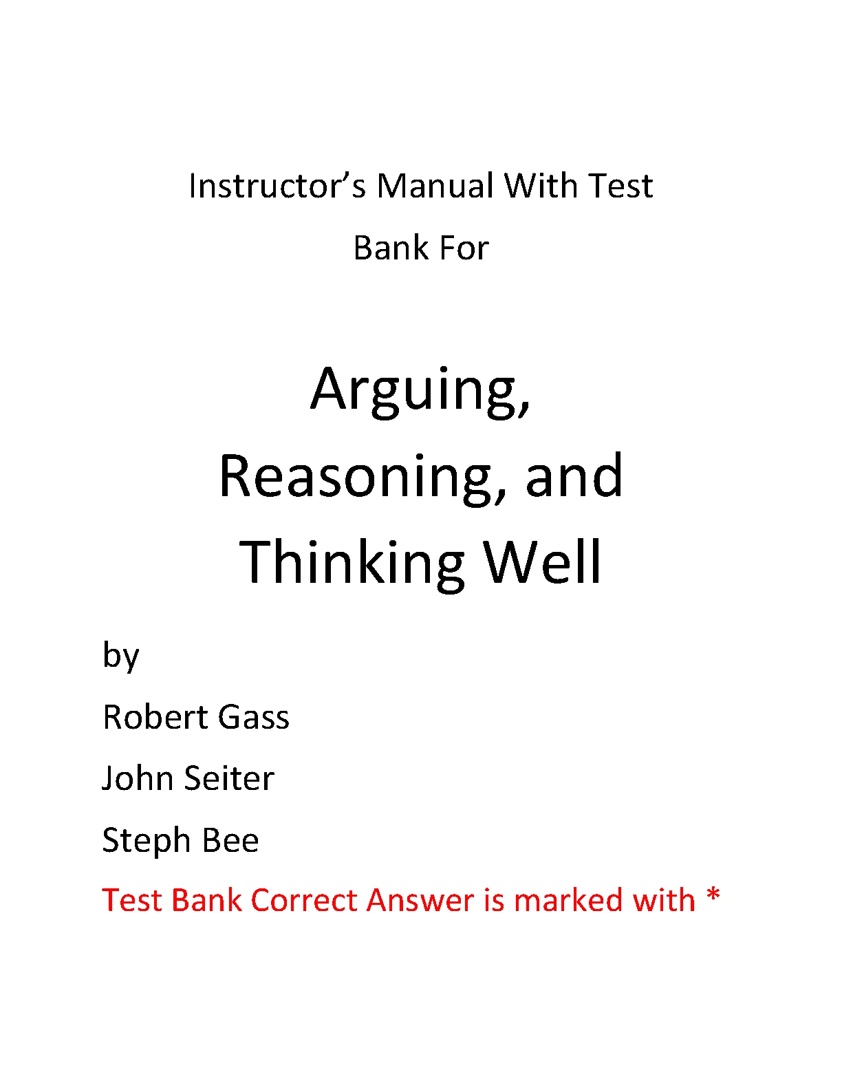 Test Bank for Arguing, Reasoning, and Thinking Well, 1st edition by Robert Gass. Test Bank for Arguing, Reasoning, and Thinking Well, 1st edition by Robert Gass TEST BANK