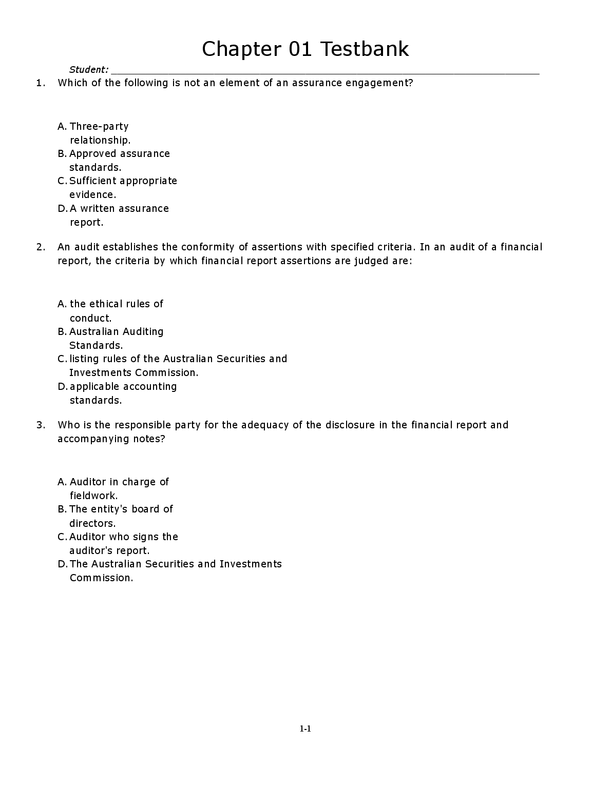 Test Bank for Auditing & Assurance Services in Australia, 7th Edition by Gay, Grant Simnett, and Roger. Test Bank for Auditing & Assurance Services in Australia, 7th Edition by Gay, Grant Simnett, and Roger TEST BANK