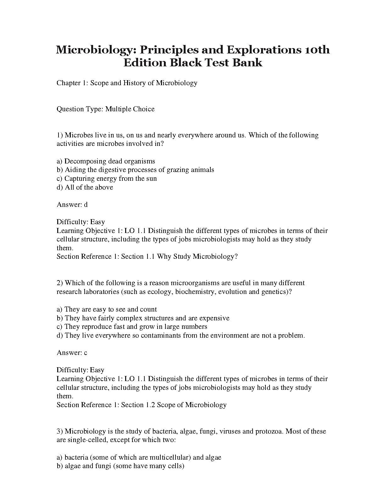 Test Bank For Microbiology: Principles and Explorations 10th Edition by Jacquelyn G. Black, Laura J. Black. Test Bank For Microbiology: Principles and Explorations 10th Edition by Jacquelyn G. Black, Laura J. Black TEST BANK