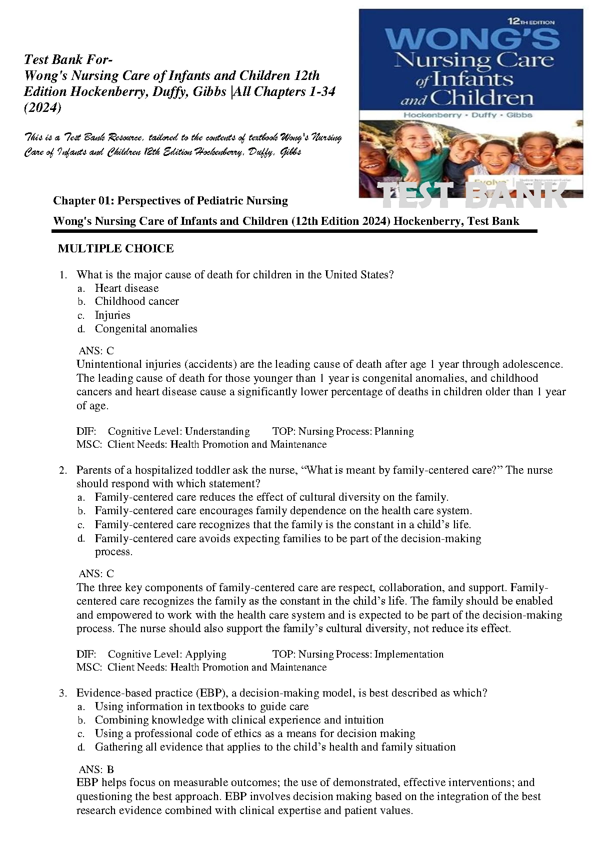 Test Bank For Wong's Nursing Care of Infants and Children 12th Edition Hockenberry, Duffy, Gibbs |All Chapters 1-34 (2024). Test Bank For Wong's Nursing Care of Infants and Children 12th Edition Hockenberry, Duffy, Gibbs |All Chapters 1-34 (2024) TEST BANK