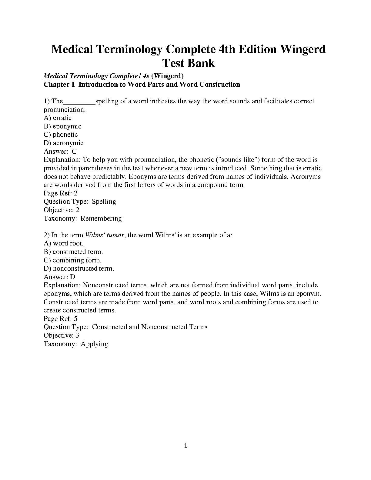 test bank for medical terminology complete! 4th edition by bruce wingerd