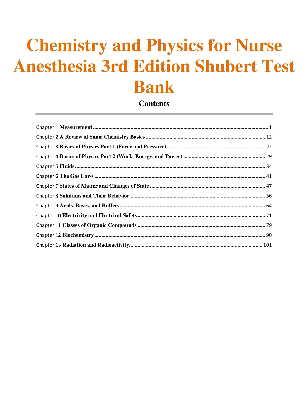 test bank for chemistry and physics for nurse anesthesia 3rd edition by david shubert, john leyba, sharon niemann