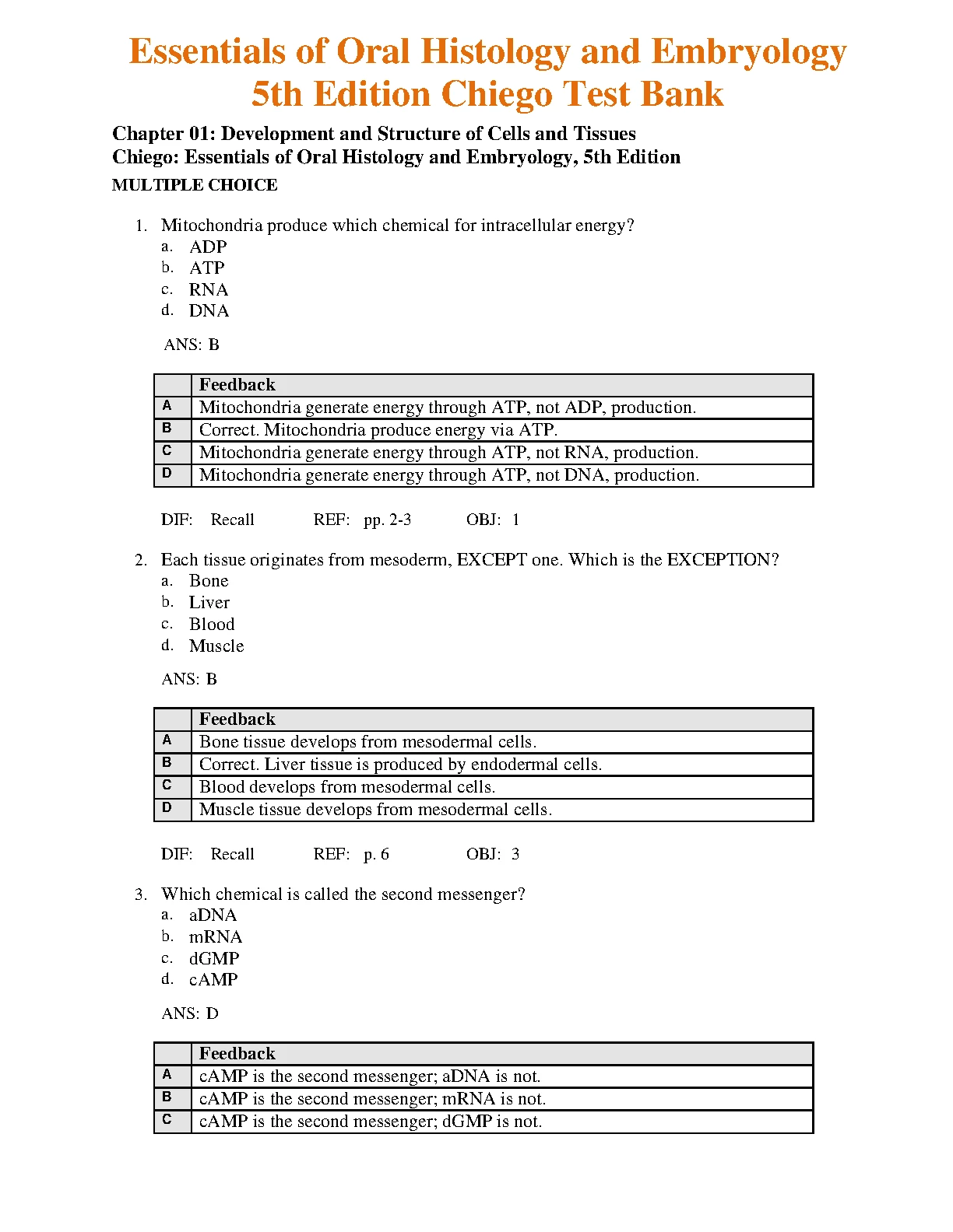 Test Bank For Essentials of Oral Histology and Embryology, 5th Edition by Daniel J. Chiego Jr. Test Bank For Essentials of Oral Histology and Embryology, 5th Edition by Daniel J. Chiego Jr TEST BANK
