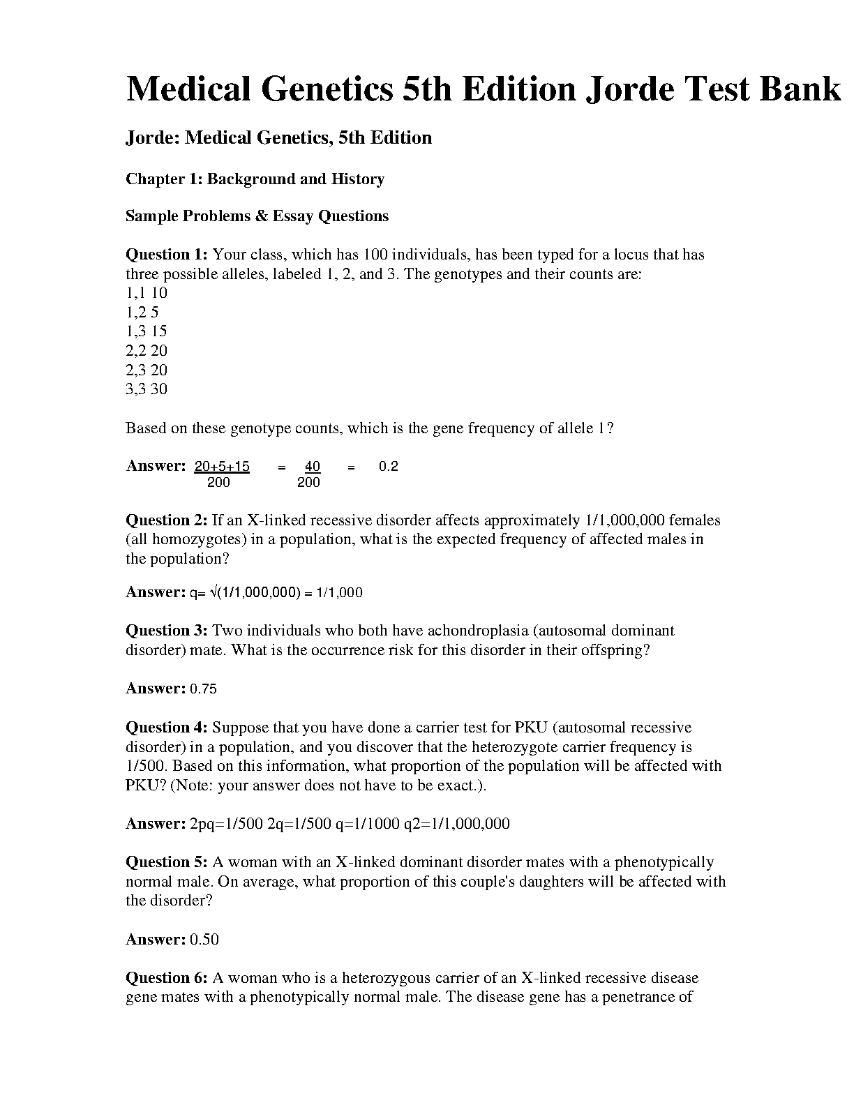 Test Bank For Medical Genetics, 5th Edition by Lynn B. Jorde, John C. Carey, Michael J. Bamshad. Test Bank For Medical Genetics, 5th Edition by Lynn B. Jorde, John C. Carey, Michael J. Bamshad TEST BANK