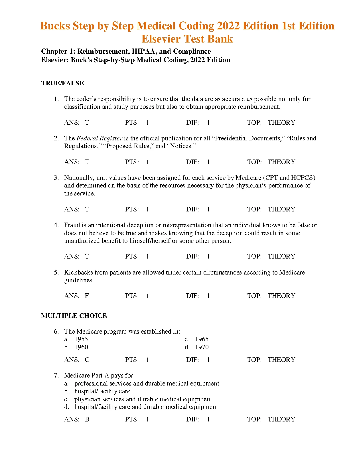 Test Bank For Bucks Step by Step Medical Coding 2022 Edition 1st Edition by Elsevier. Test Bank For Bucks Step by Step Medical Coding 2022 Edition 1st Edition by Elsevier TEST BANK