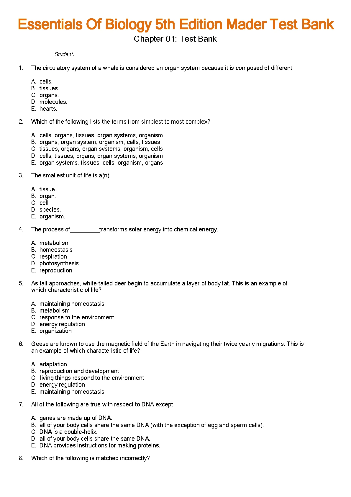 Test Bank For Essentials Of Biology 5th Edition by Sylvia Mader, Michael Windelspecht. Test Bank For Essentials Of Biology 5th Edition by Sylvia Mader, Michael Windelspecht TEST BANK