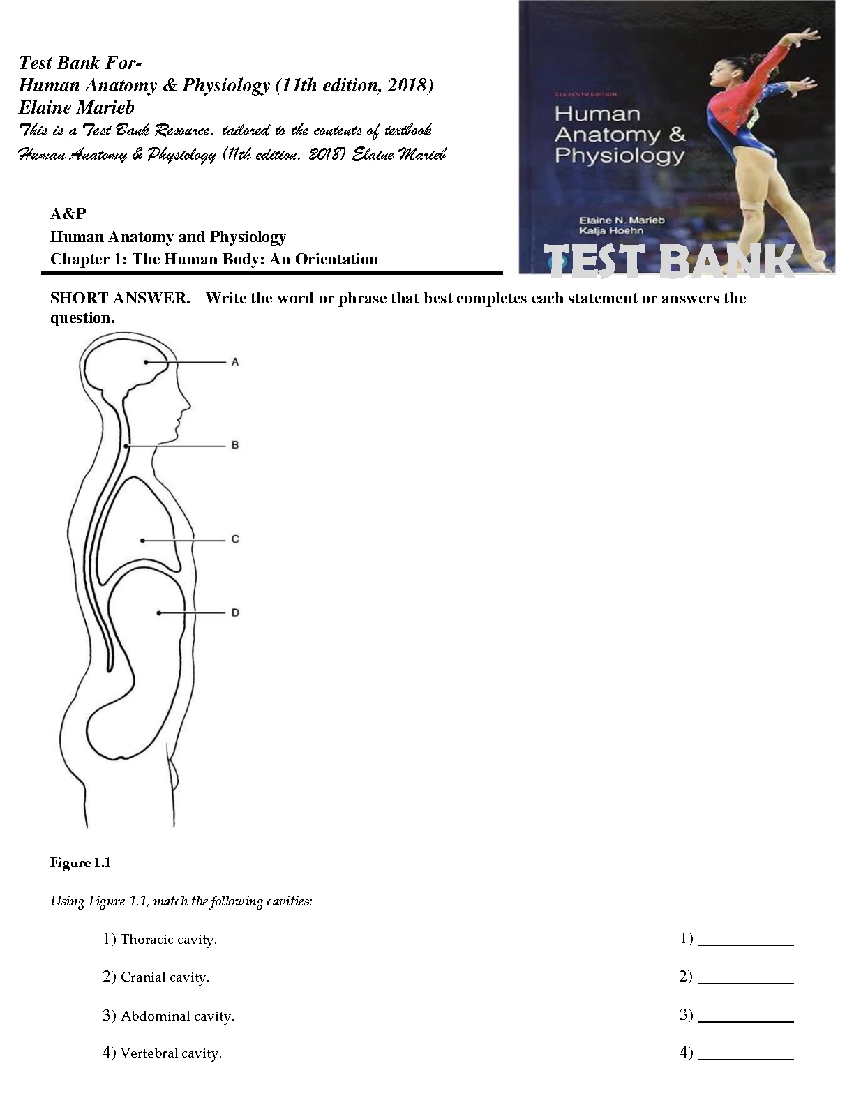 Test Bank For Human Anatomy & Physiology 11th edition, (2018) Elaine Marieb This is a Test Bank Resource, tailored to the contents of textbook Human Anatomy & Physiology (11th edition, 2018) BY Elaine Marieb. Test Bank For Human Anatomy & Physiology 11th edition, (2018) Elaine Marieb This is a Test Bank Resource, tailored to the contents of textbook Human Anatomy & Physiology (11th edition, 2018) BY Elaine Marieb TEST BANK