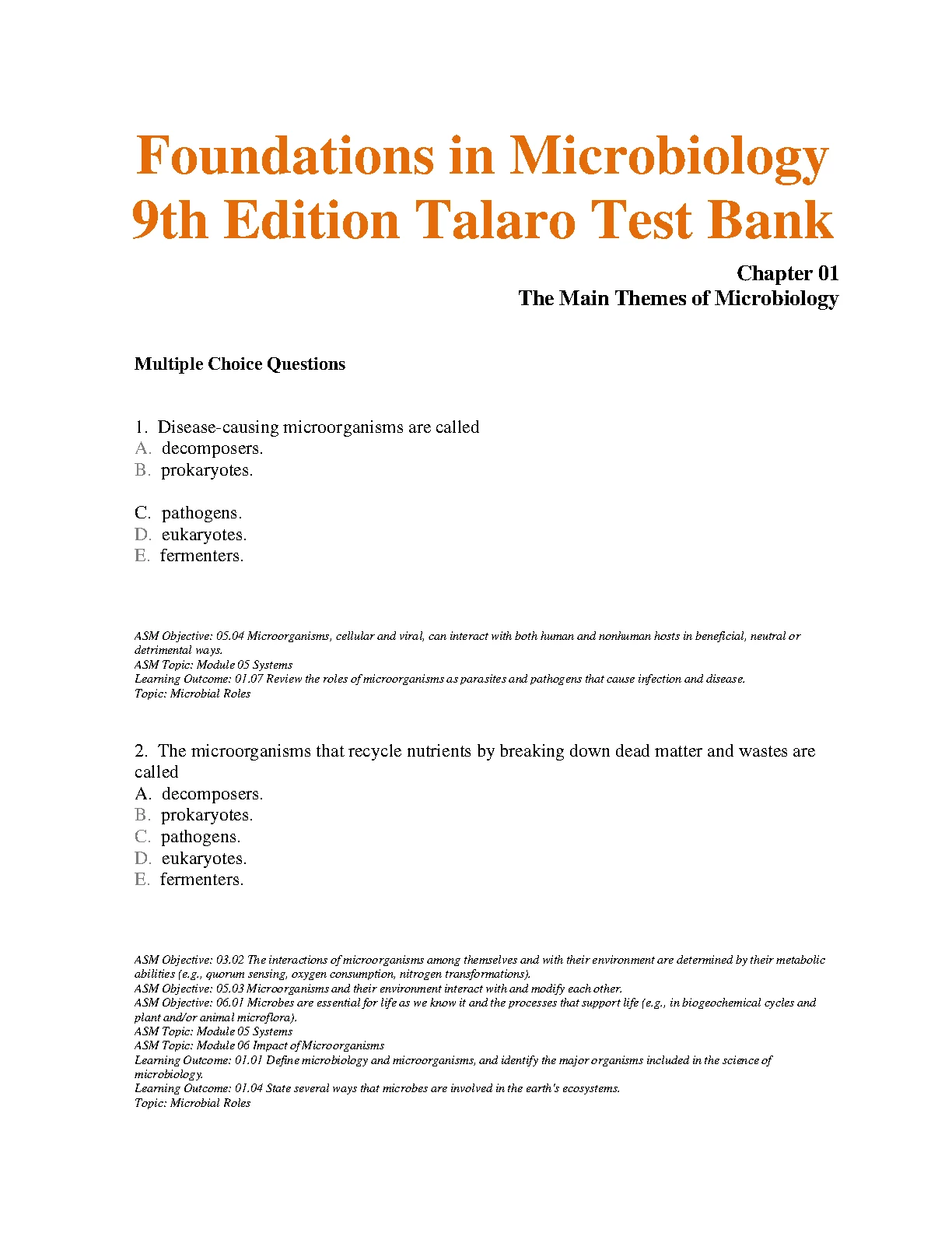 Test Bank For Foundations in Microbiology 9th Edition by Kathleen Park Talaro, Barry Chess. Test Bank For Foundations in Microbiology 9th Edition by Kathleen Park Talaro, Barry Chess TEST BANK