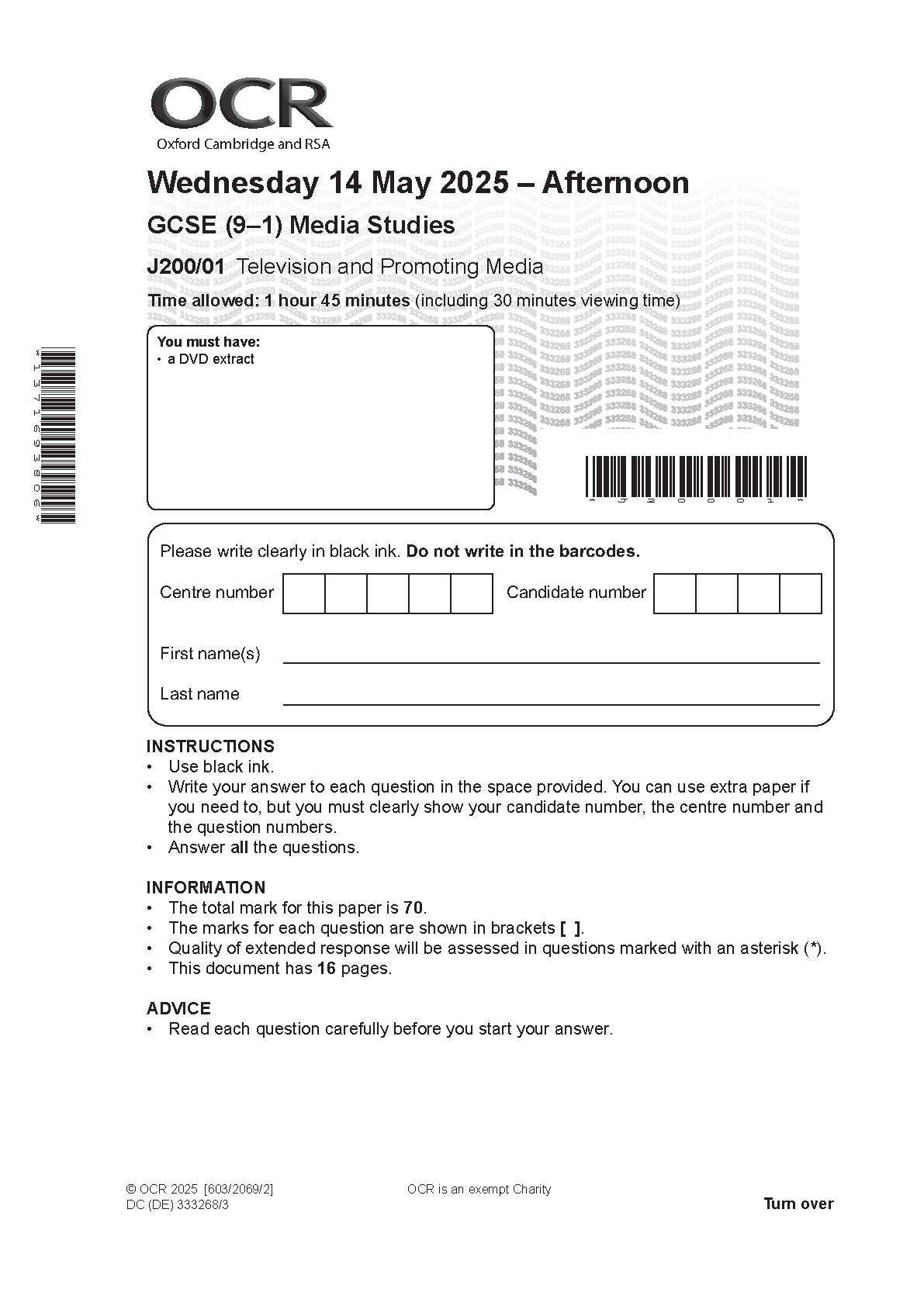 2025 OCR GCSE Media Studies Paper 1 and Mark Scheme Combined (J200/01 Television and Promoting Media). 2025 OCR GCSE Media Studies Paper 1 and Mark Scheme Combined (J200/01 Television and Promoting Media) OCR GCSE Papers & mark schemes