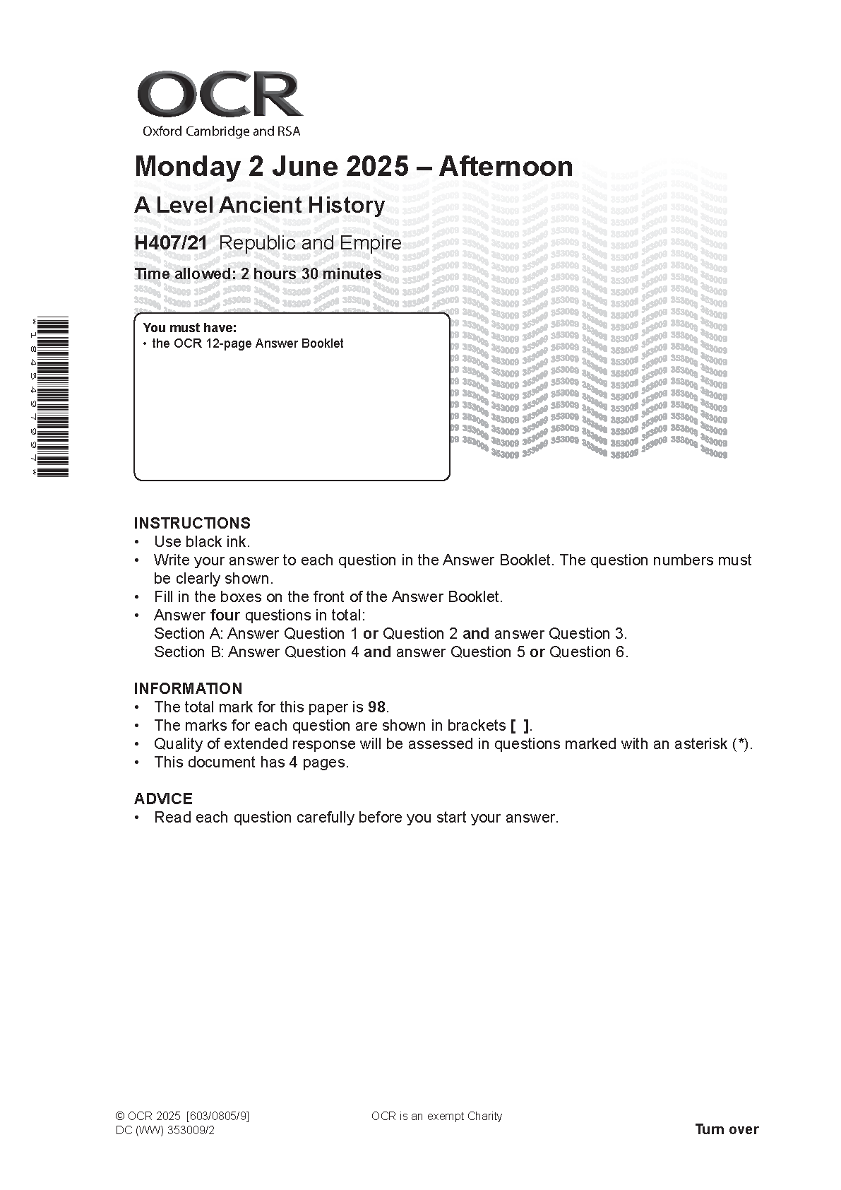 2025 OCR A Level Ancient History Paper 21 and Mark Scheme Combined (H407/21 Republic and Empire). 2025 OCR A Level Ancient History Paper 21 and Mark Scheme Combined (H407/21 Republic and Empire) OCR GCE A & AS LEVEL Papers and Mark Schemes