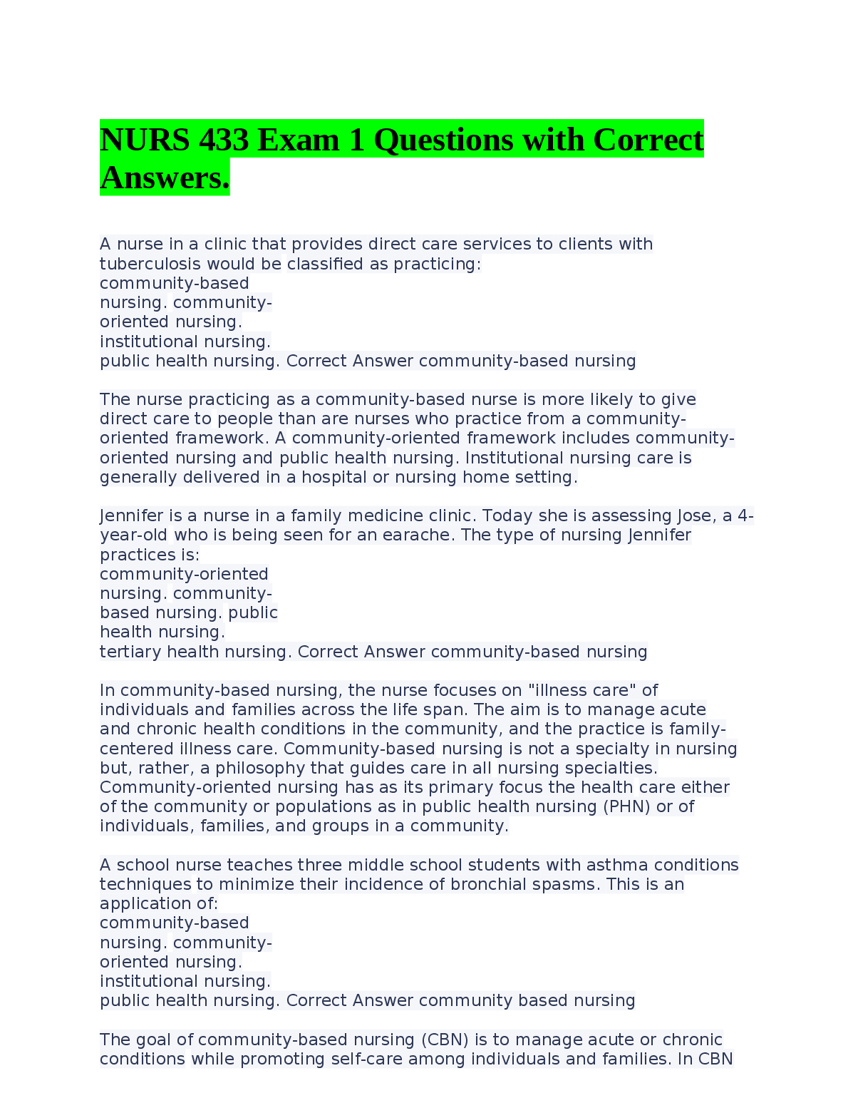 ace your nurs 433 exam 1 with this expertly curated question and answer resource. this guide provides in-depth explanati...