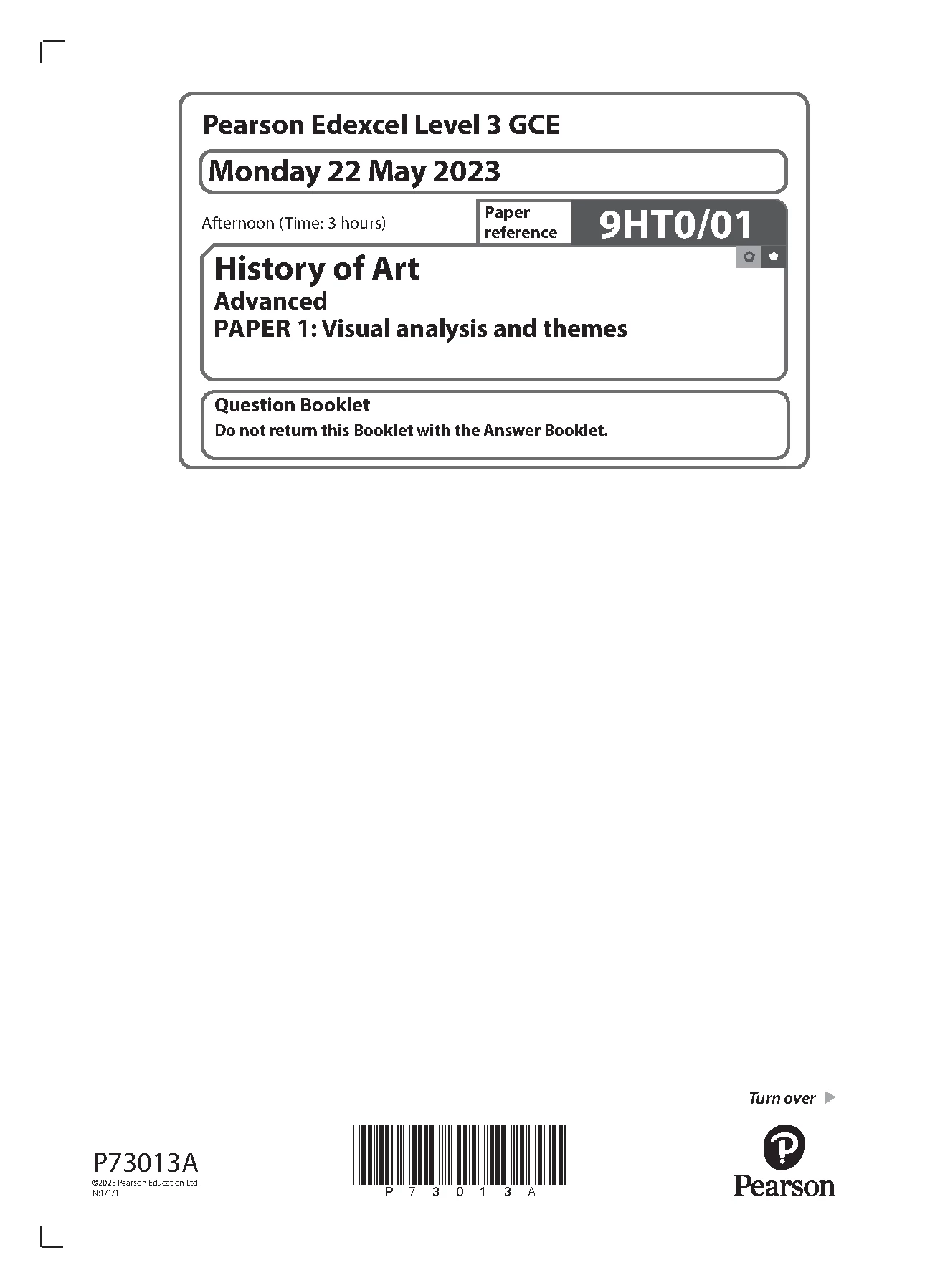 PEARSON EDEXCEL A LEVEL History of Art PAPER 1 2023 QUESTION PAPER (9HT0/01: Visual analysis and themes). PEARSON EDEXCEL A LEVEL History of Art PAPER 1 2023 QUESTION PAPER (9HT0/01: Visual analysis and themes) Pearson Edexcel A and AS Papers and Mark Schemes