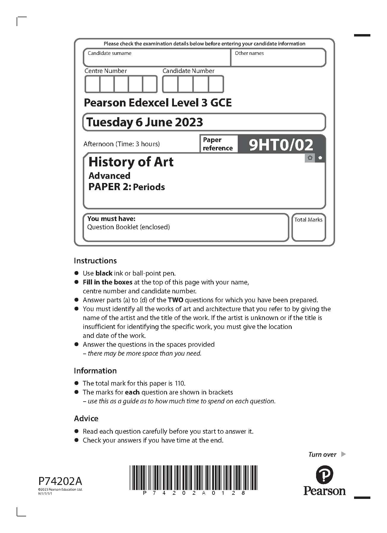 PEARSON EDEXCEL A LEVEL History of Art PAPER 2 2023 QUESTION PAPER (9HT0/02: Periods). PEARSON EDEXCEL A LEVEL History of Art PAPER 2 2023 QUESTION PAPER (9HT0/02: Periods) Pearson Edexcel A and AS Papers and Mark Schemes