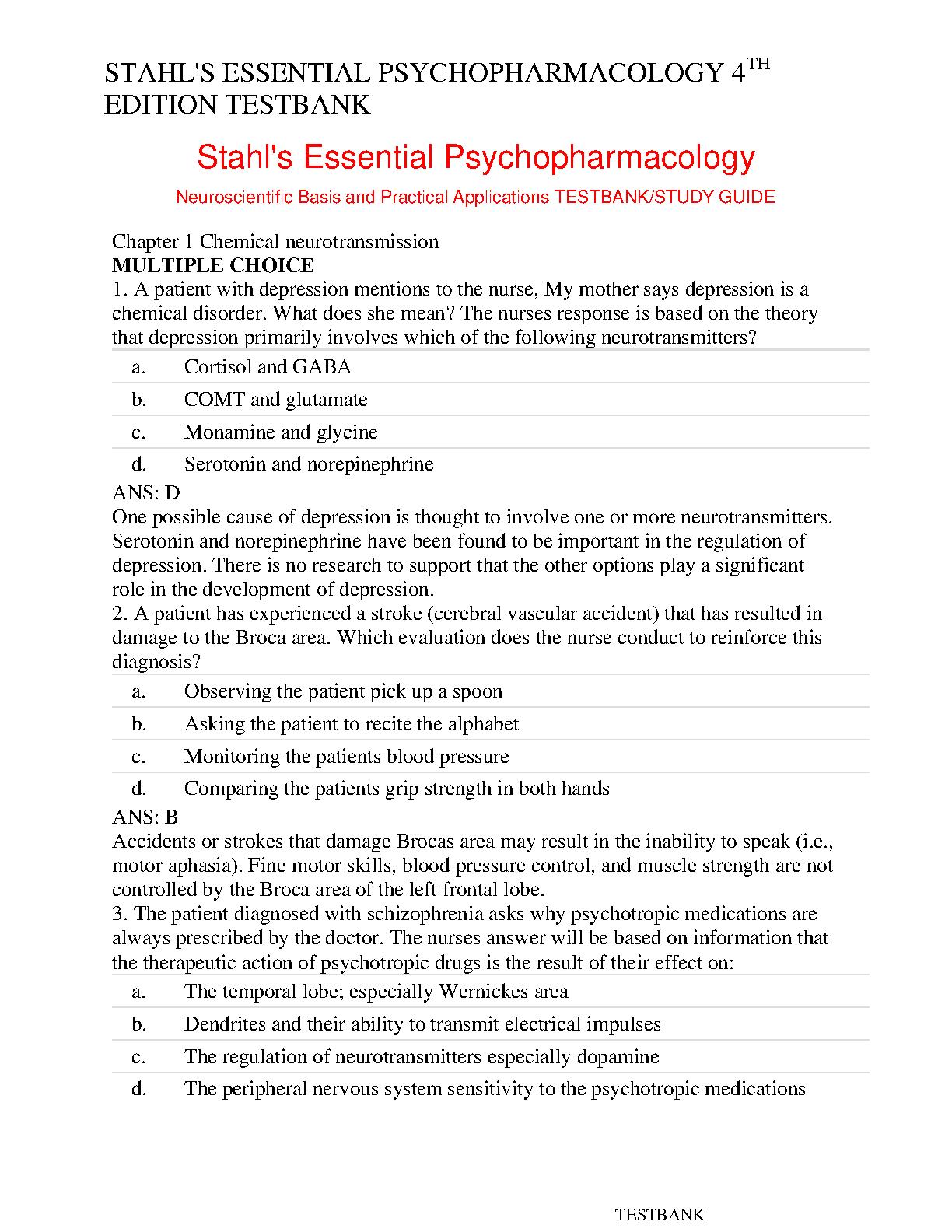 ace your psychopharmacology exams with this comprehensive test bank for stahl's essential psychopharmacology, 4th editio...