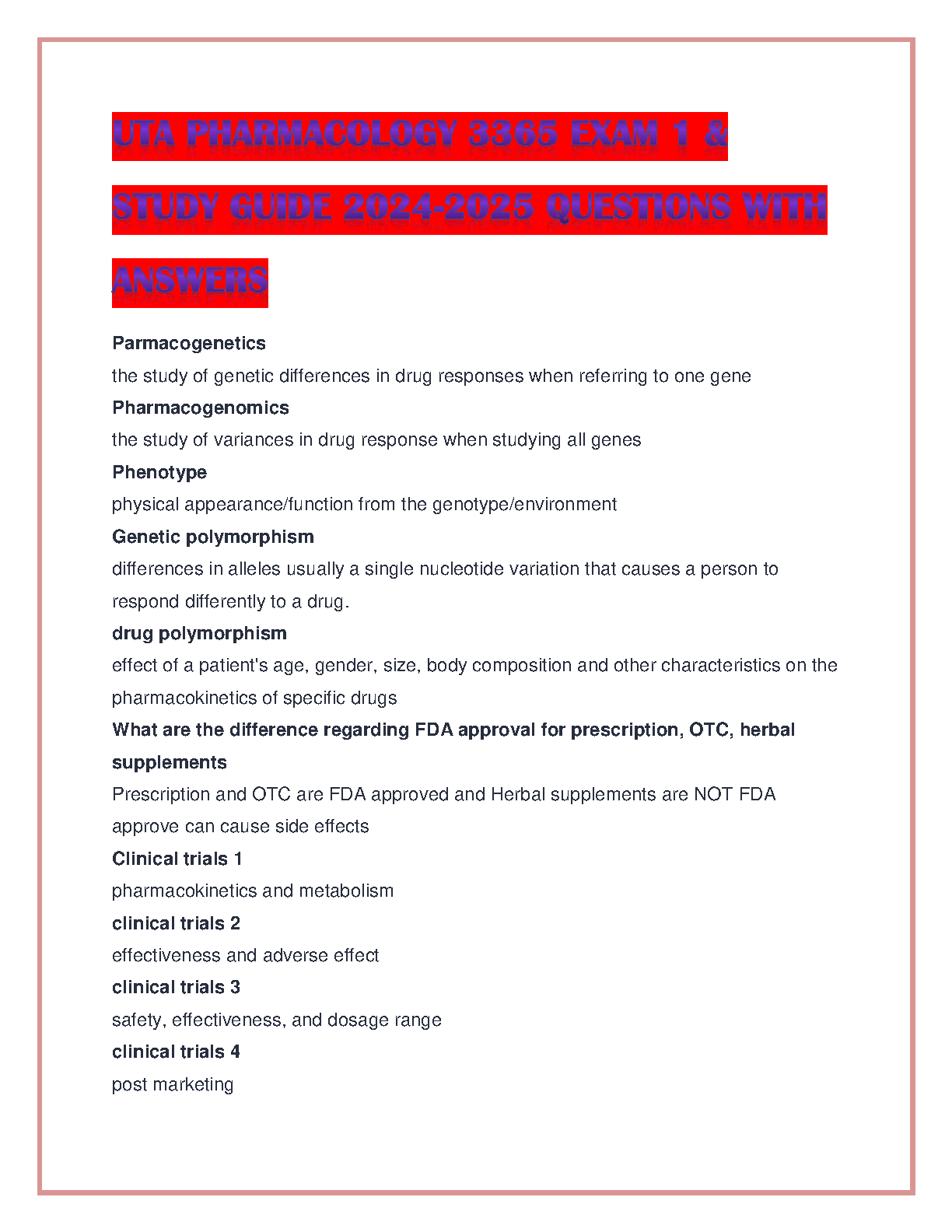 ace your uta pharmacology 3365 exam 1 in 2024-2025 with this comprehensive study guide. this resource provides key conce...