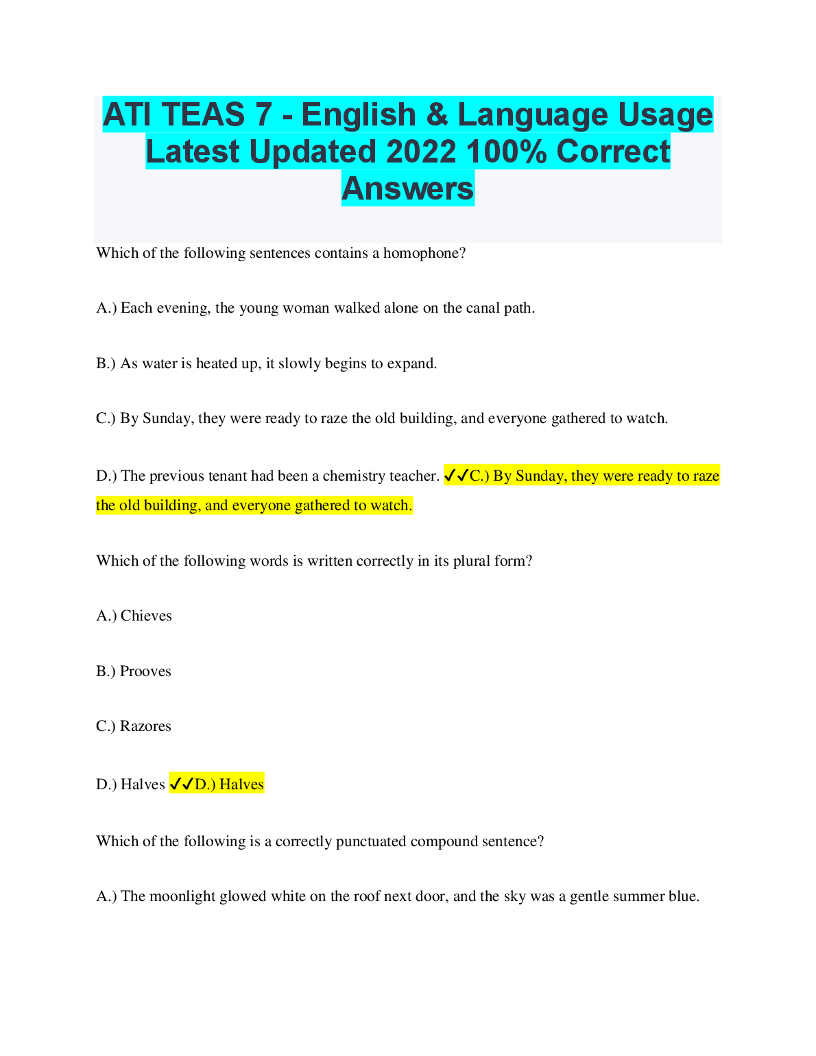 ace your ati teas 7 english language exam on your first try with this comprehensive study guide for the 2024/2025 academ...