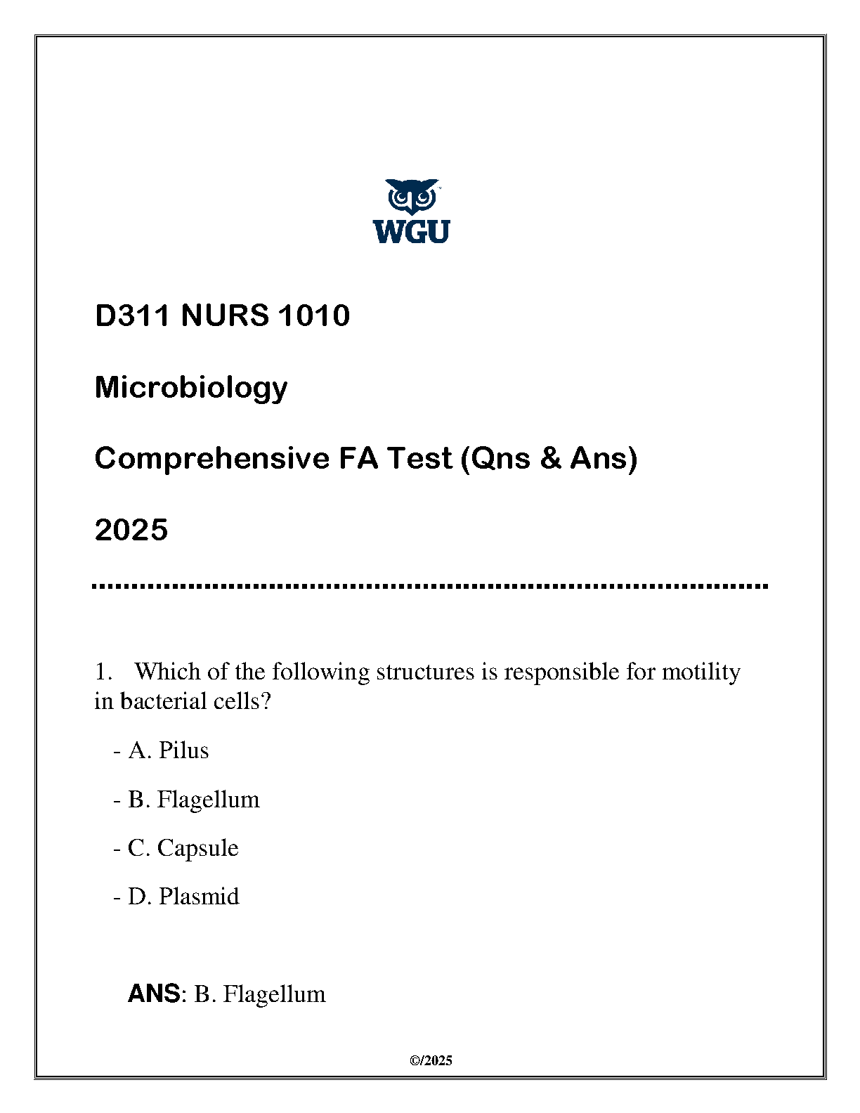 ace your wgu nurs 1010 microbiology final exam with this comprehensive fa test featuring questions and answers. this 202...