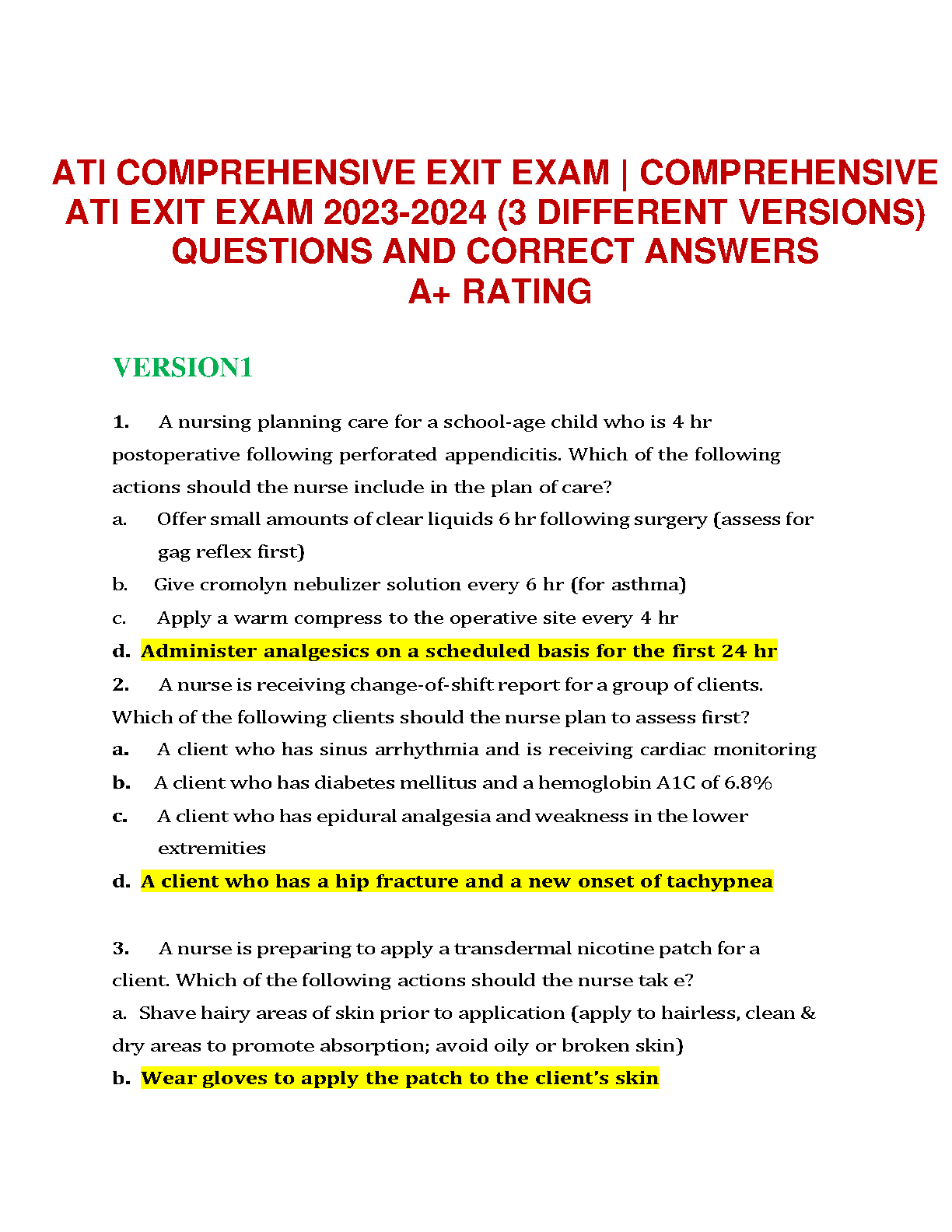 ace your ati comprehensive 2024 exit exam on your first attempt with this comprehensive study guide. this resource featu...