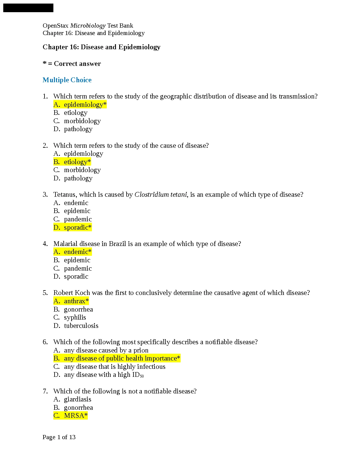 test bank for openstax microbiology (chapter 16: disease and epidemiology). download the verified paper on www.leakedexa...