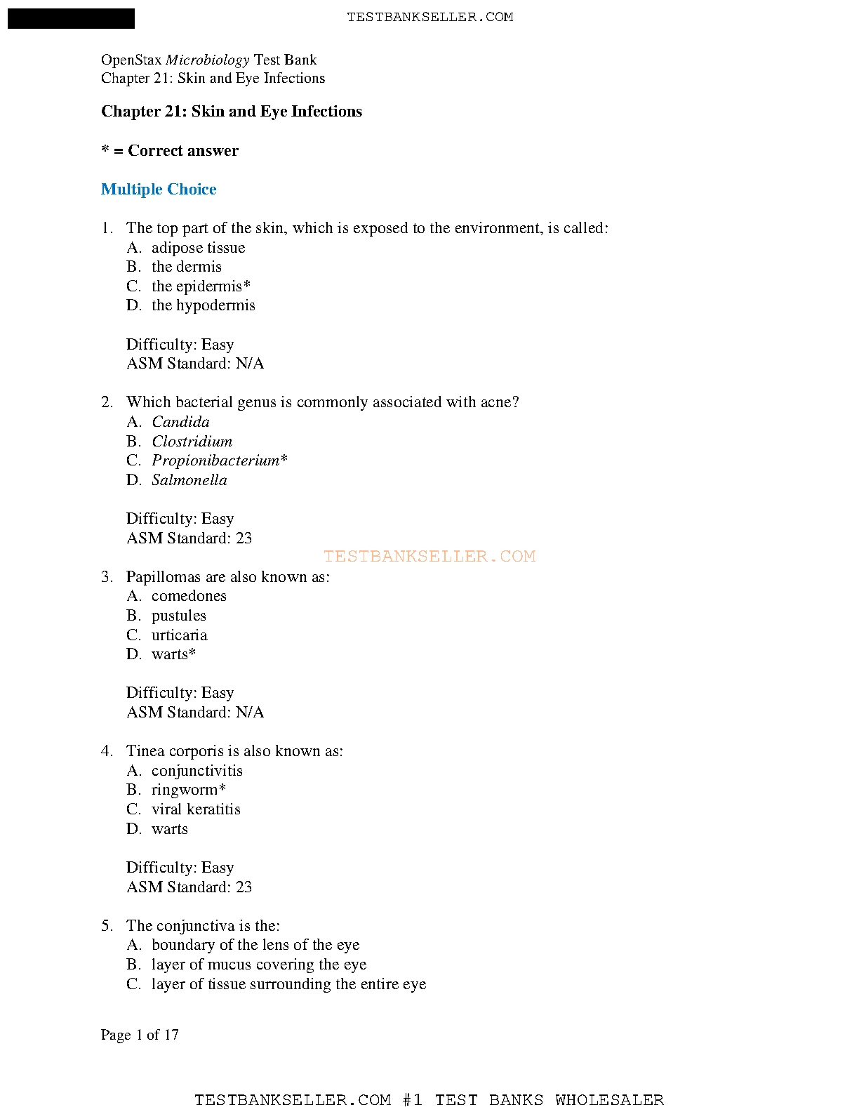 test bank for openstax microbiology (chapter 21: skin and eye infections). download the verified paper on www.leakedexam...