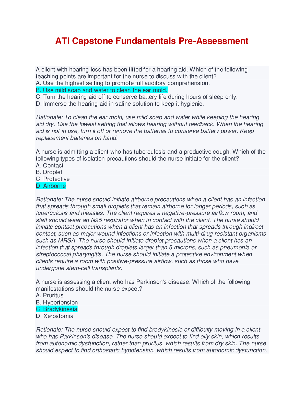 ati capstone fundamentals pre-assessment. most recent with 100% solutions. download the verified paper on www.leakedexam...