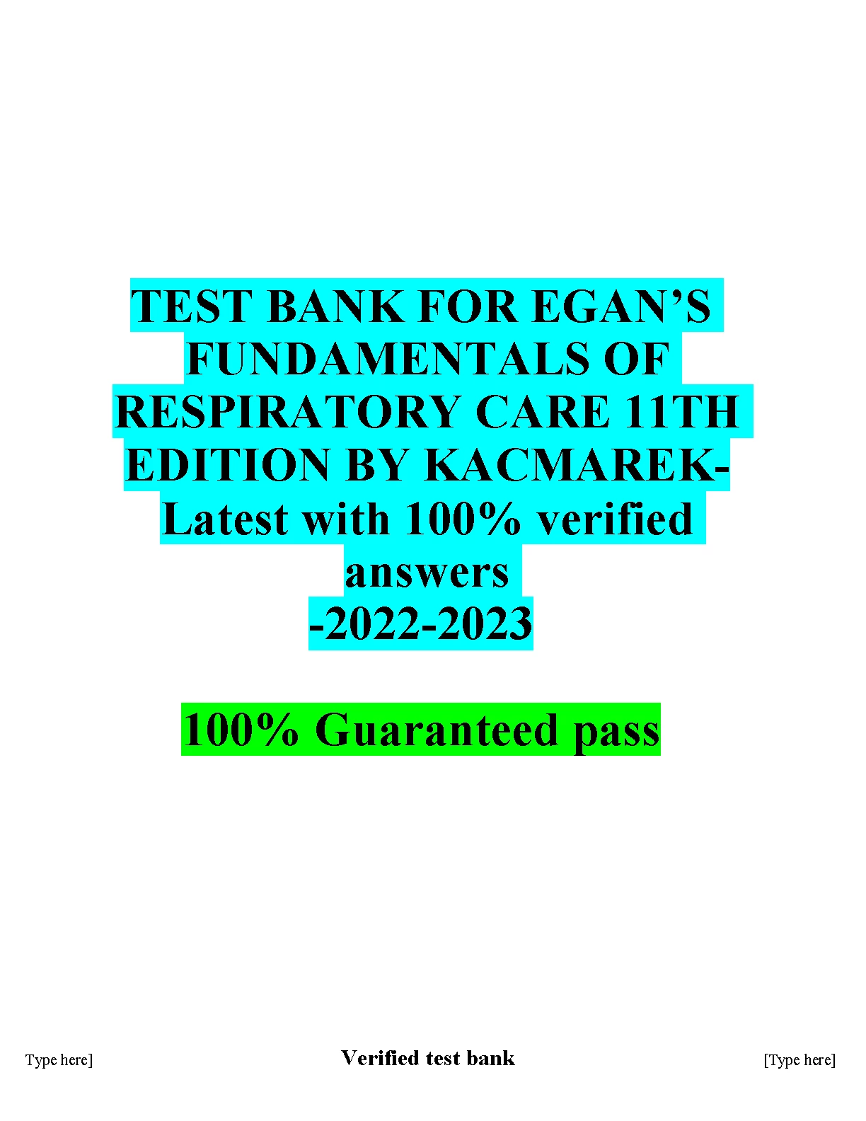 TEST BANK FOR EGAN’S FUNDAMENTALS OF RESPIRATORY CARE 11TH EDITION BY KACMAREKLatest with 100% verified answers -2022-2023. TEST BANK FOR EGAN’S FUNDAMENTALS OF RESPIRATORY CARE 11TH EDITION BY KACMAREKLatest with 100% verified answers -2022-2023 TEST BANK