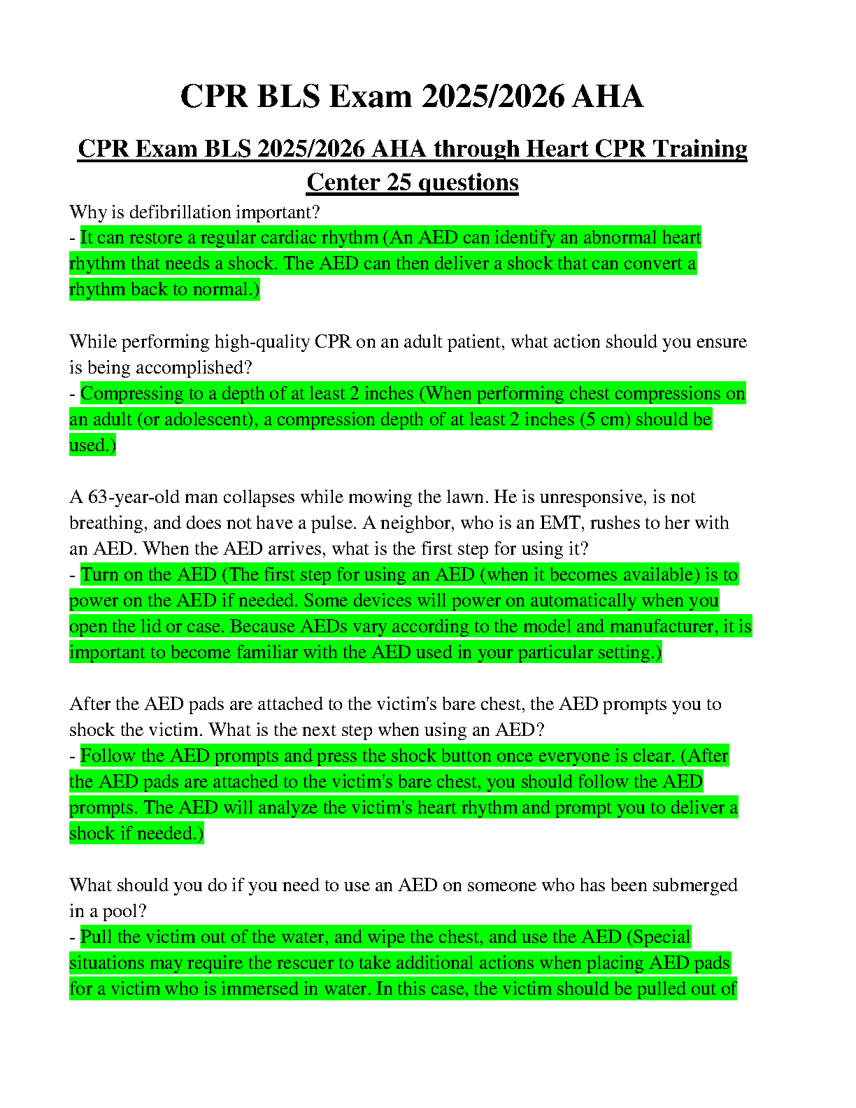 ace your 2025/2026 aha cpr bls exam on the first try! this comprehensive study guide covers all key concepts and practic...