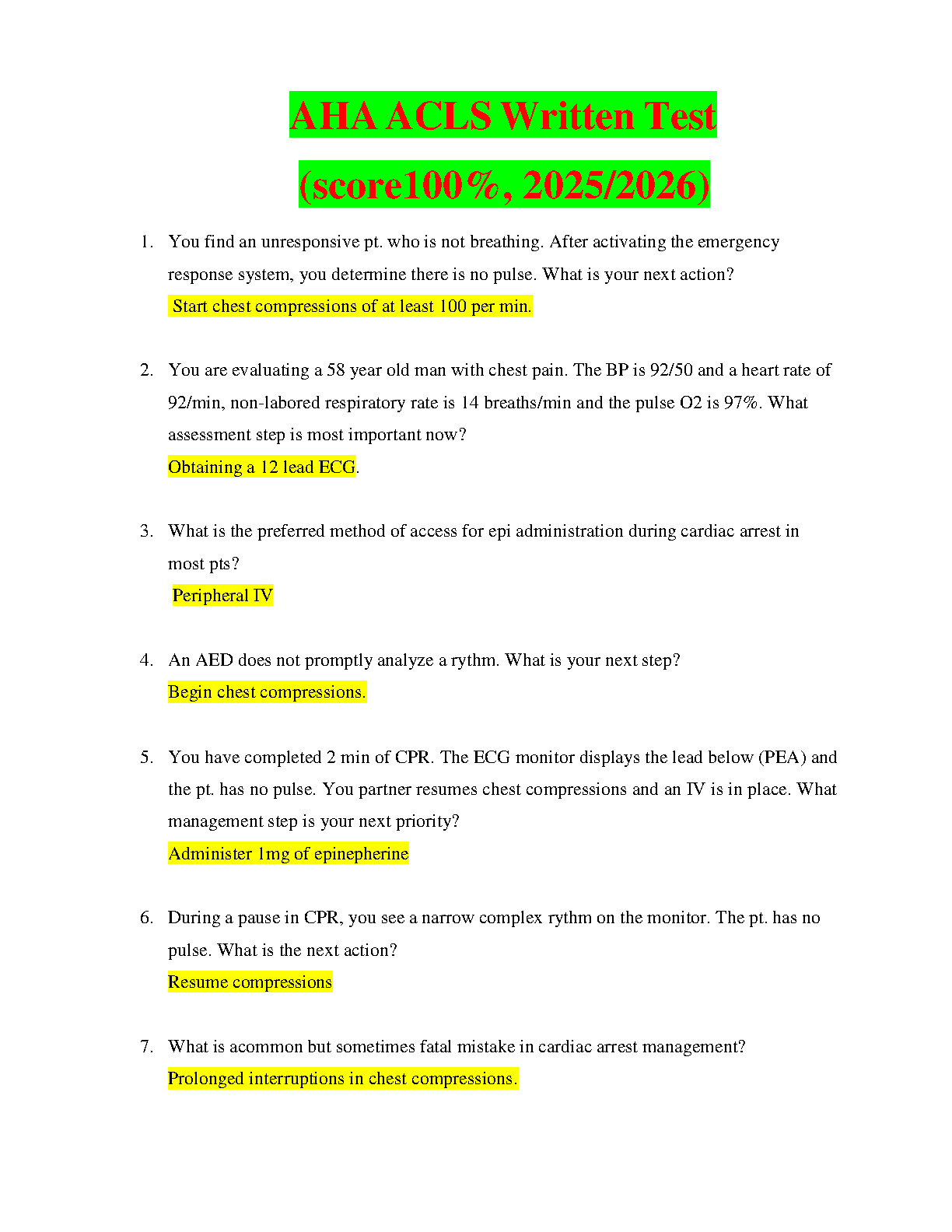 prepare for the aha acls exam with confidence using this comprehensive study resource. this resource contains questions...