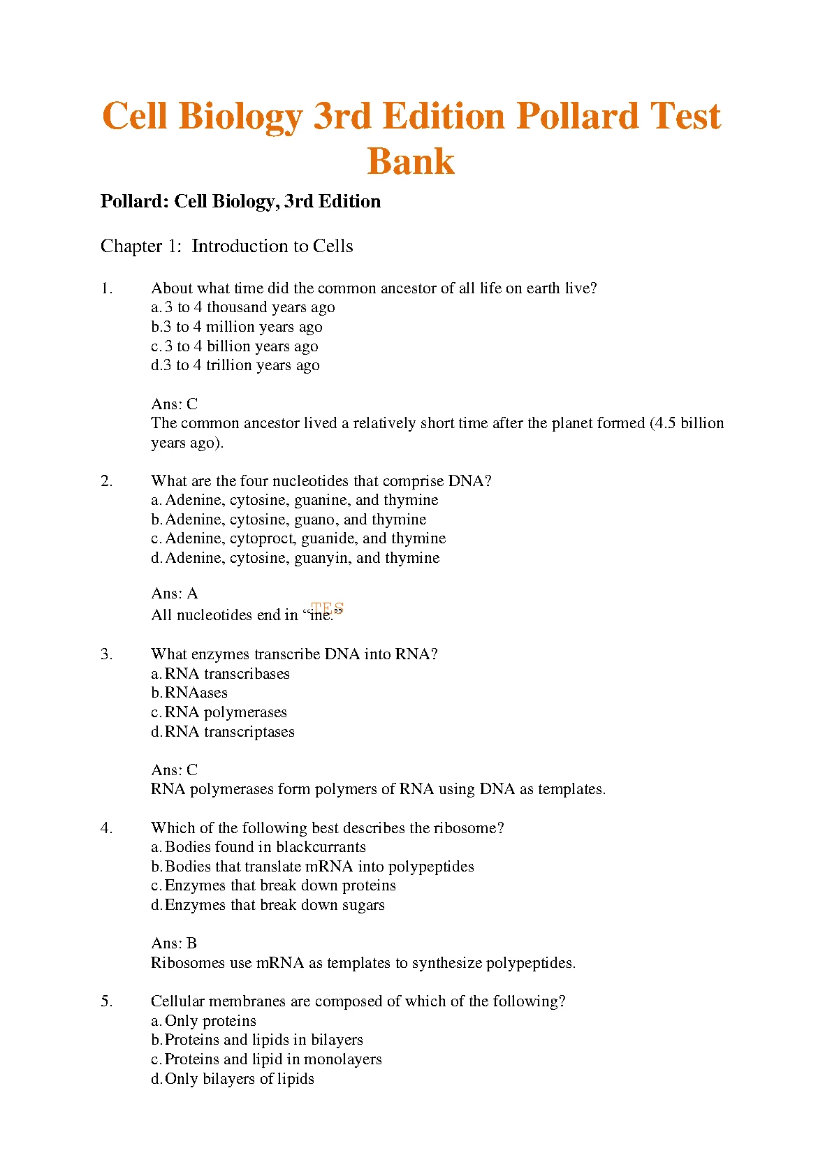 TEST BANK Cell Biology 3rd Edition By Pollard. TEST BANK Cell Biology 3rd Edition By Pollard TEST BANK