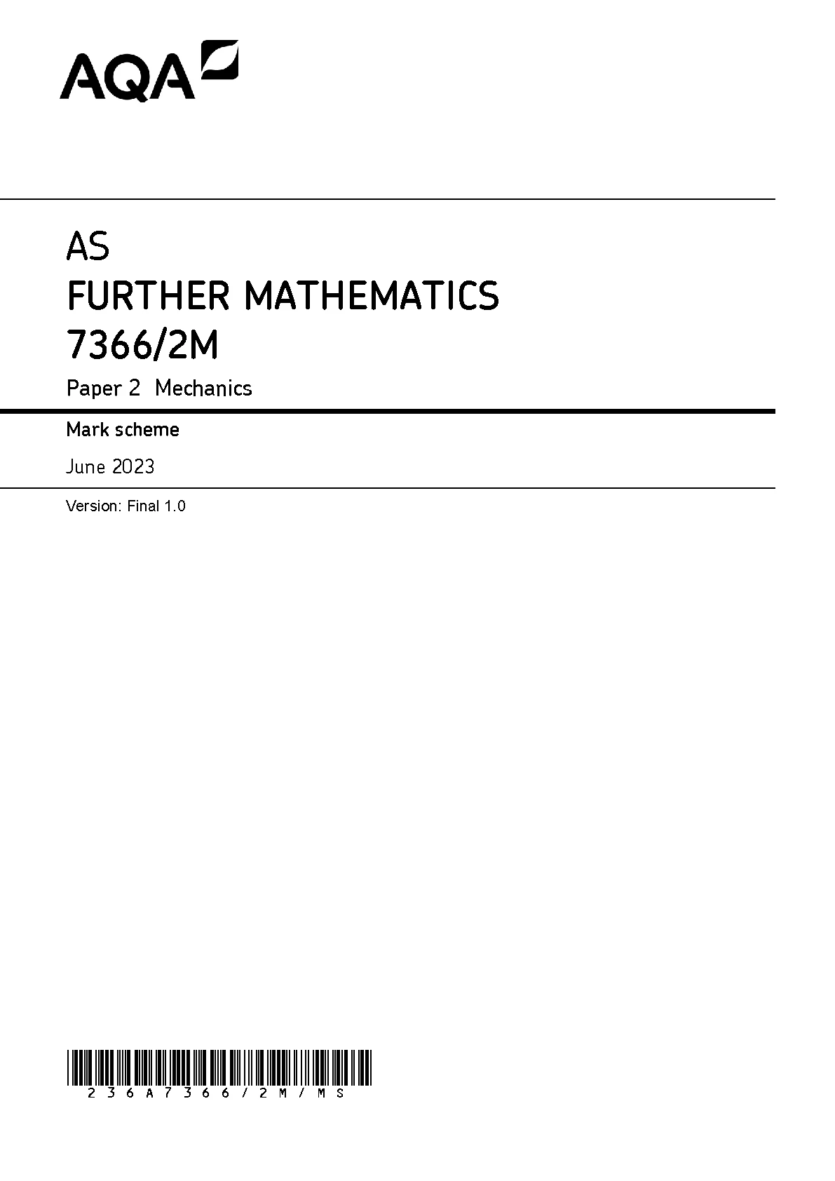 aqa as level further mathematics paper 1 mark scheme 2023 (7366/1). download official and verified aqa as level further...