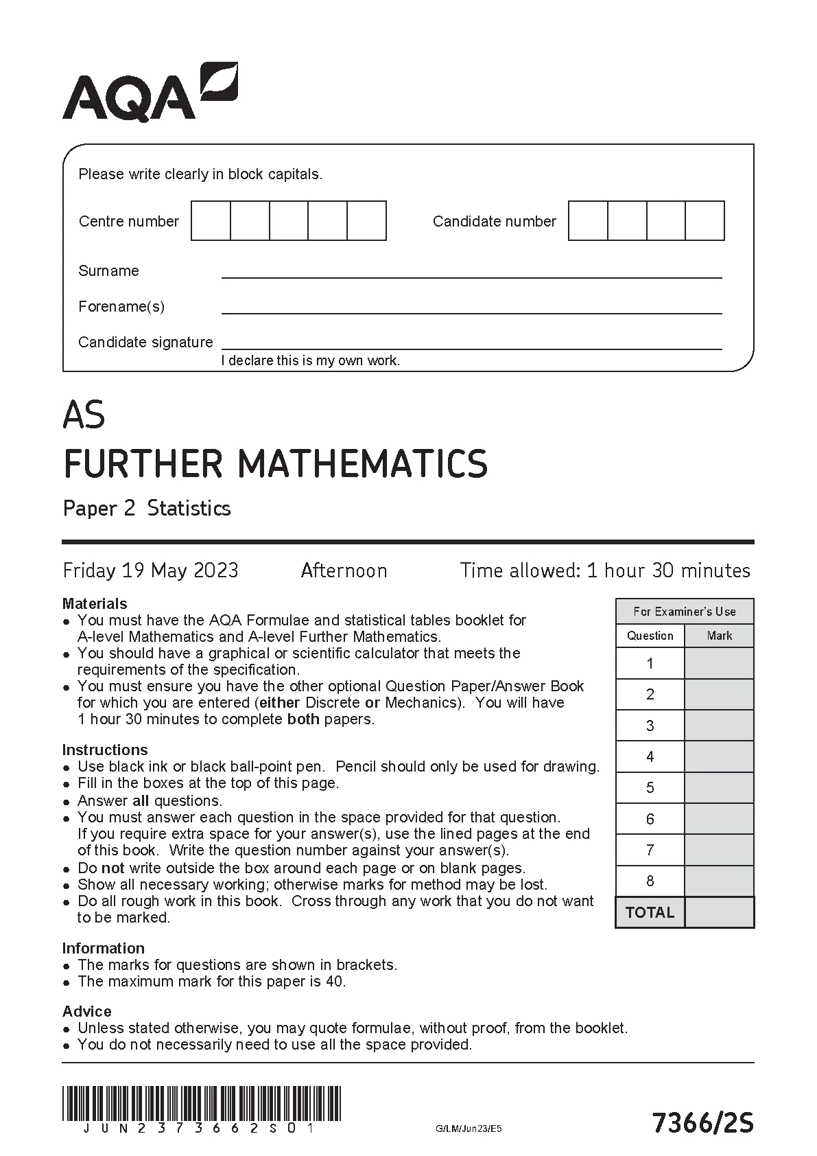 aqa as level further mathematics paper 2 mark scheme 2023 (7366/2d: discrete). download official and verified aqa as lev...