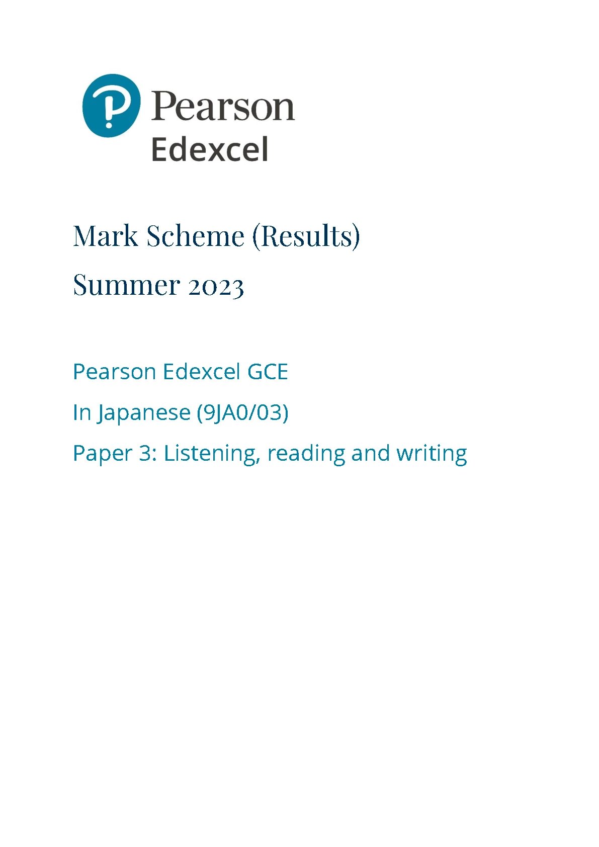 pearson edexcel a level japanese paper 3 2023 mark scheme (9ja0/03: listening, reading and writing). download official a...