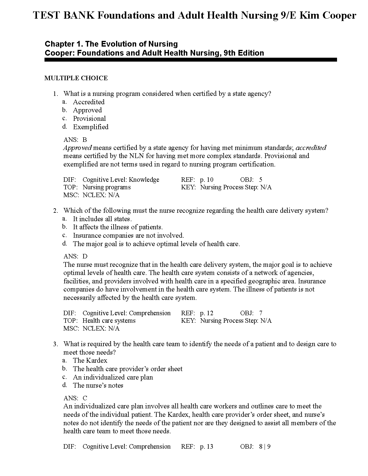 cooper: foundations and adult health nursing, 9th edition test bank . download on www.leakedexams.com instantly.