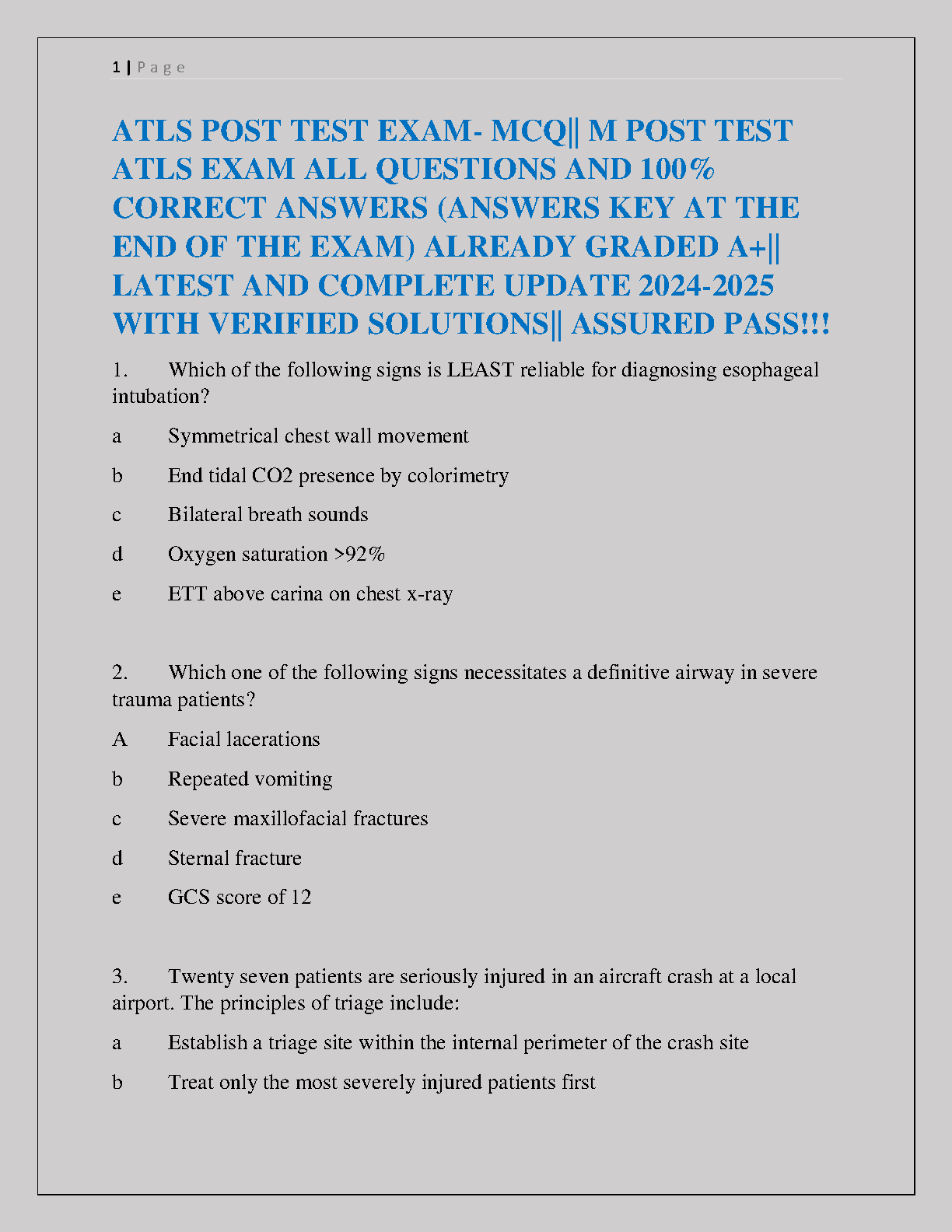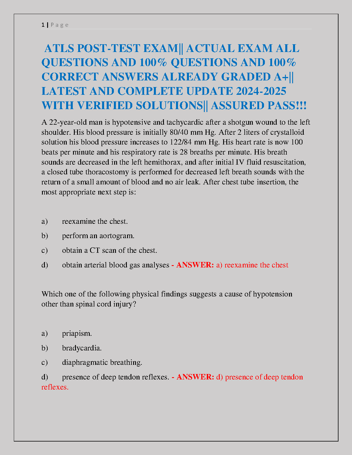ace your atls exam on the first try with this comprehensive 2024/2025 edition question bank. featuring 320+ graded quest...