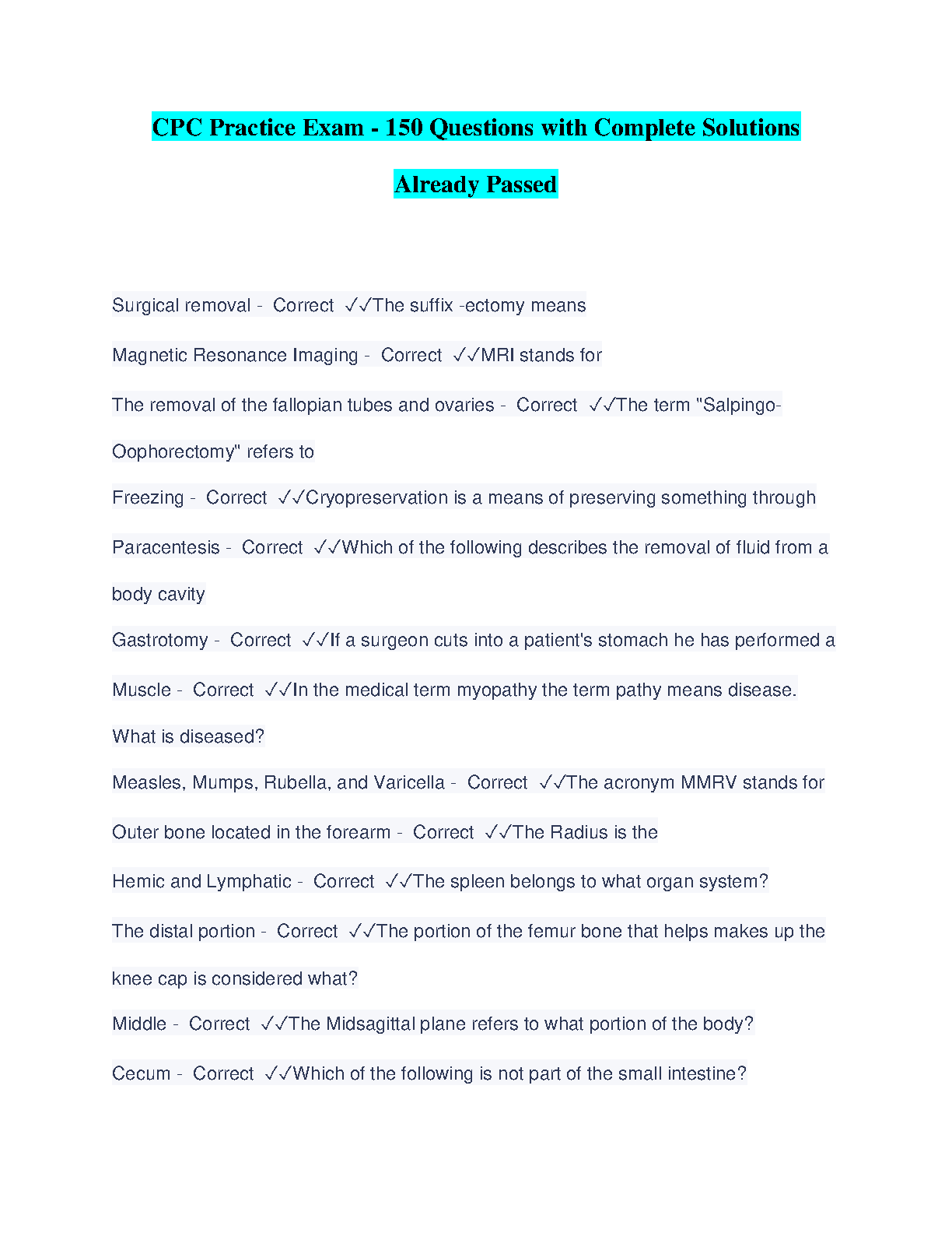 ace your cpc exam on the first try with this comprehensive 150-question practice exam and complete solutions. this updat...