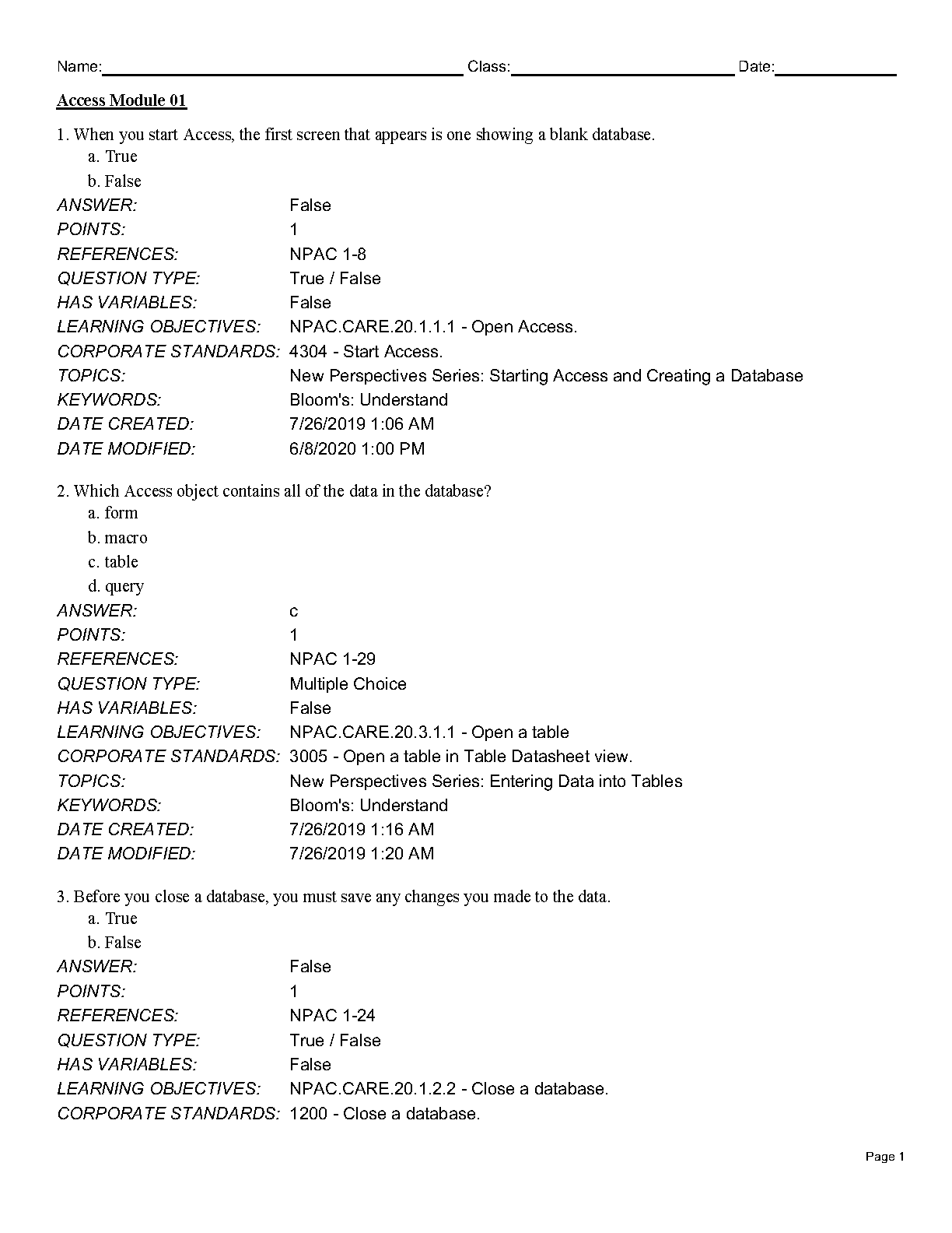 ace your access exams with this comprehensive test bank for access module 01. covering key concepts from opening and cre...