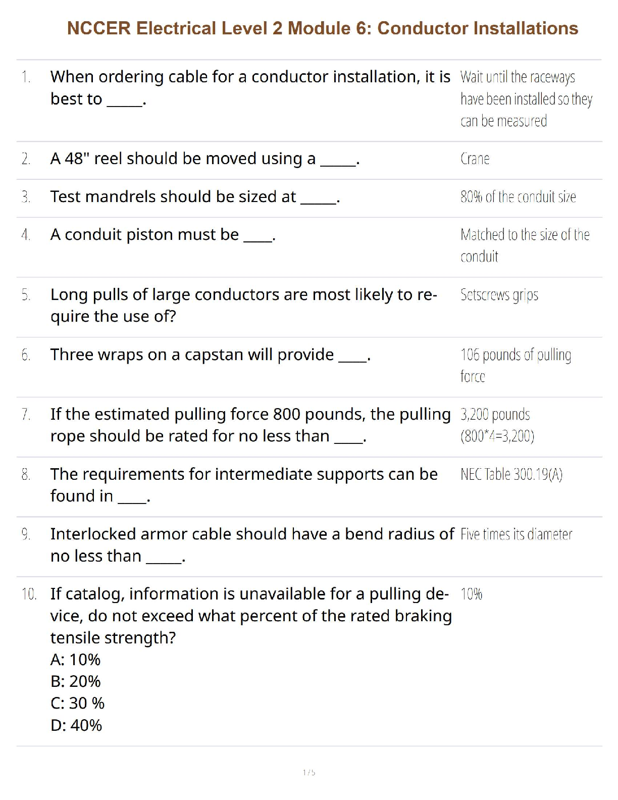 ace your nccer electrical level 1 exam with these practice questions covering conductors and cables. this resource is de...
