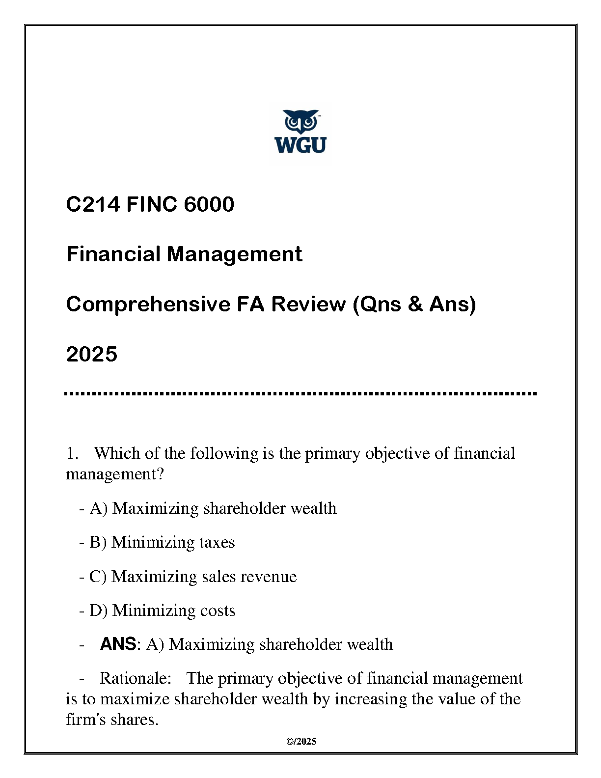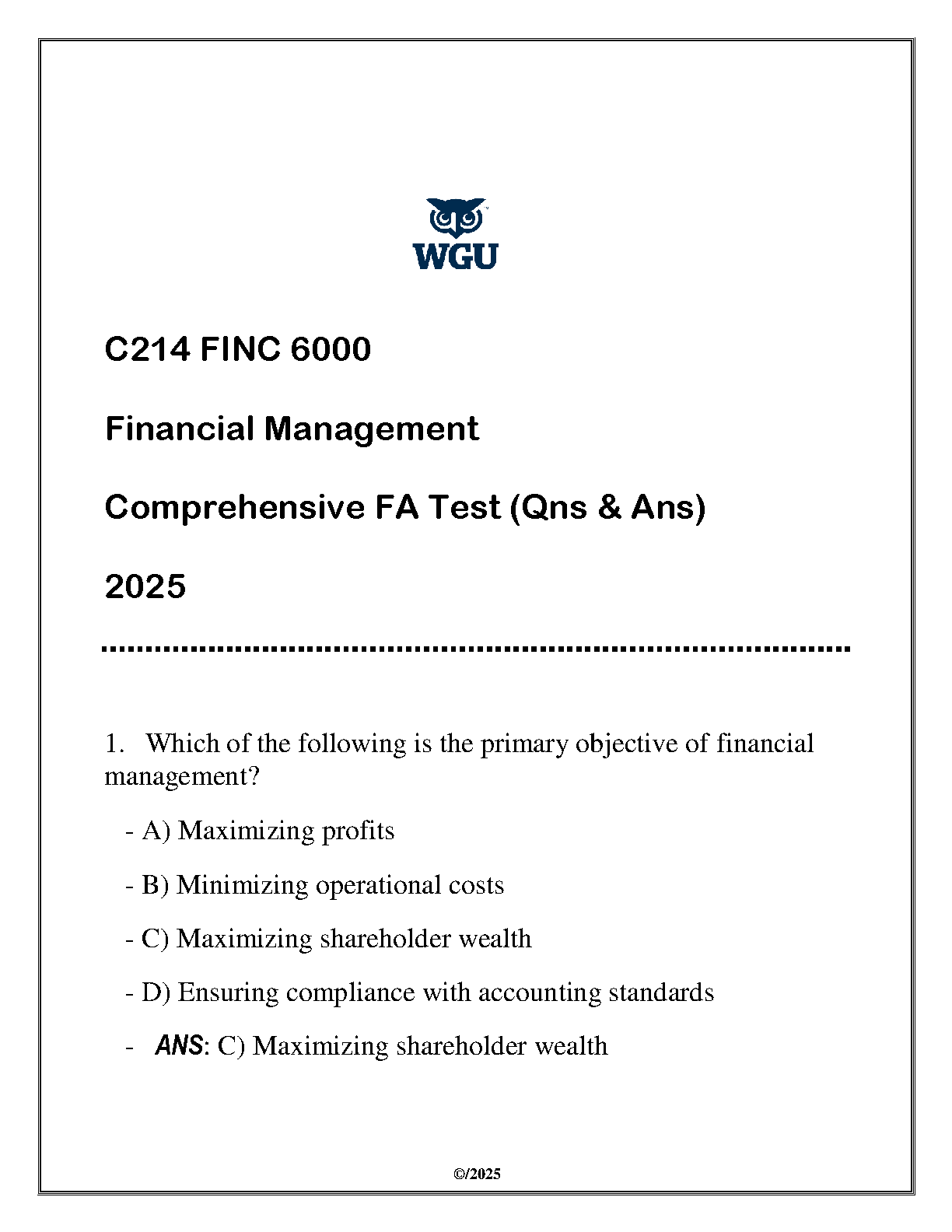 ace your wgu c214 financial management exam with this comprehensive test bank. this resource contains questions and answ...