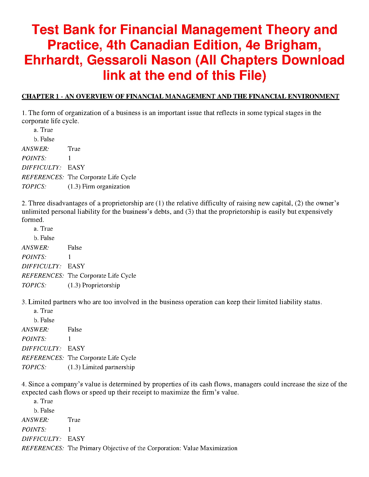 ace your financial management exams with this comprehensive test bank for brigham & ehrhardt's 15th edition. this resour...
