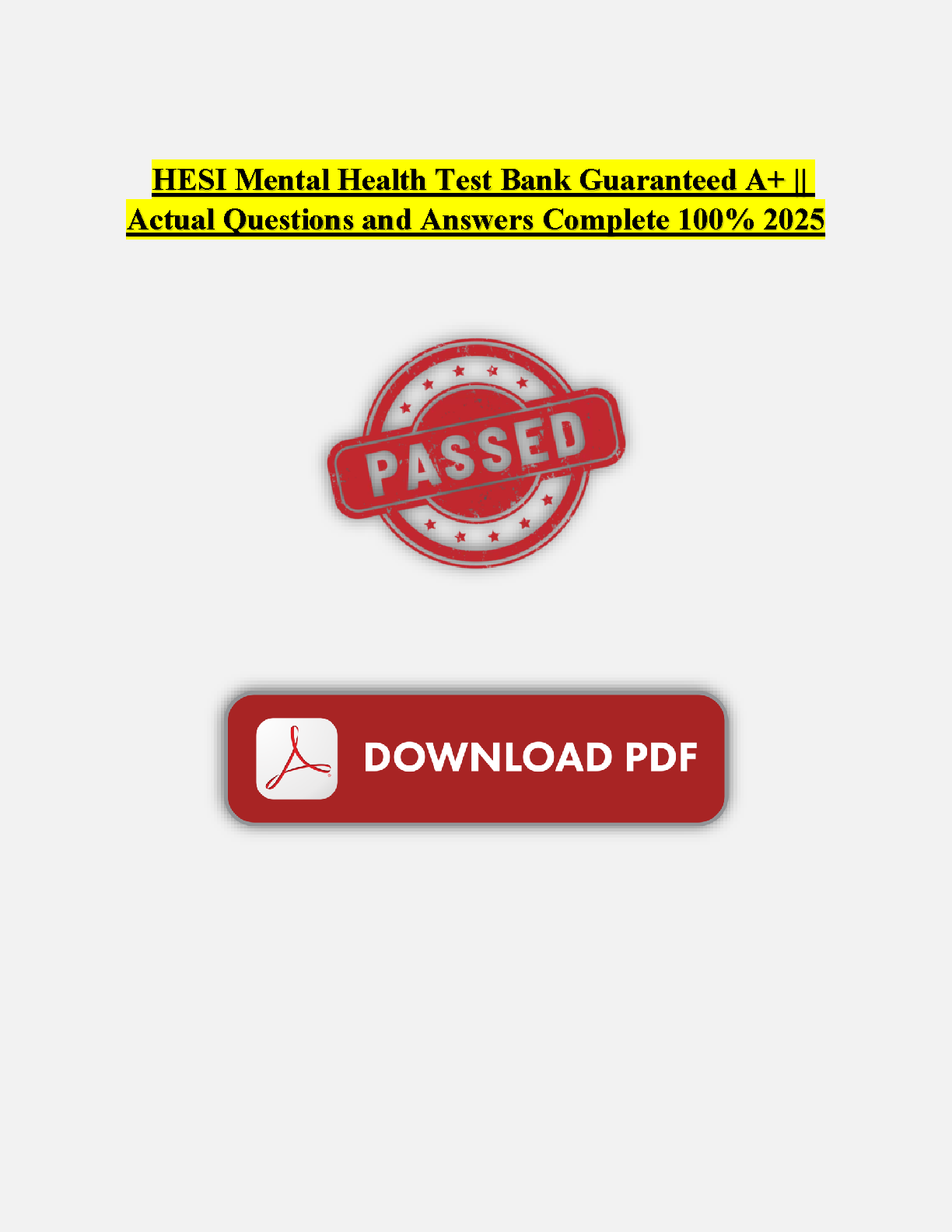 ace your hesi mental health exam with this comprehensive test bank, featuring 100% complete actual questions and answers...