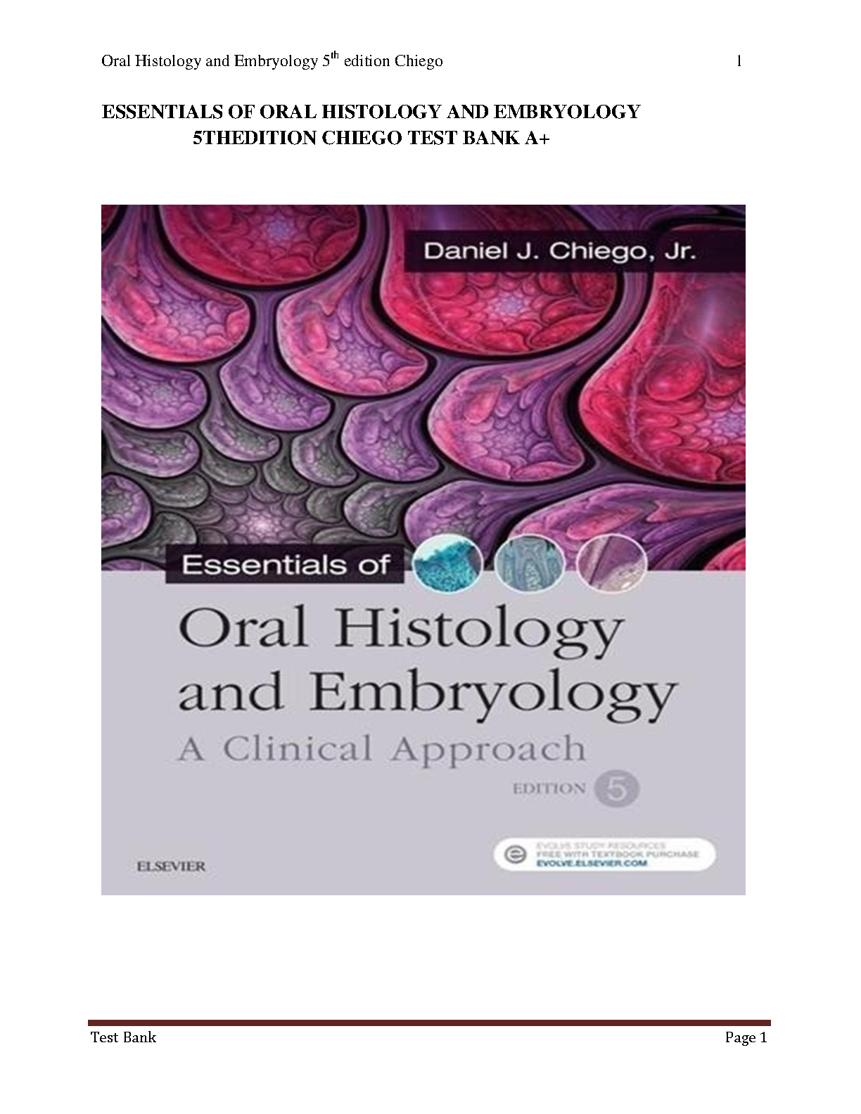 essentials of oral histology and embryology 5th edition chiego test bank. download on www.leakedexams.com instantly.