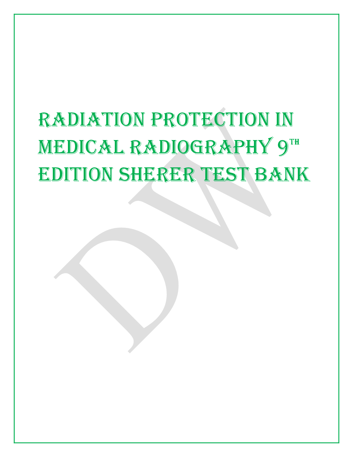 Test Bank for Radiation Protection in Medical Radiography 9th Edition by Mary Alice Statkiewicz Sherer, Paula J. Visconti, E. Russell Ritenour, and Kelli Welch Haynes. Test Bank for Radiation Protection in Medical Radiography 9th Edition by Mary Alice Statkiewicz Sherer, Paula J. Visconti, E. Russell Ritenour, and Kelli Welch Haynes TEST BANK