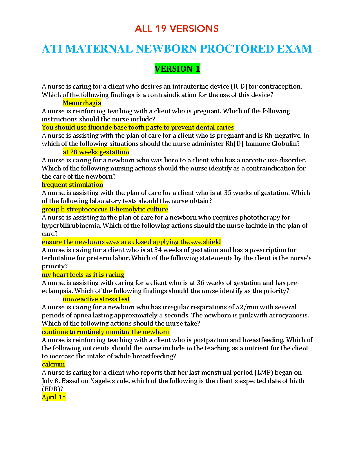 pass your ati maternal newborn proctored exam on the first try with this comprehensive study guide featuring all 19 vers...