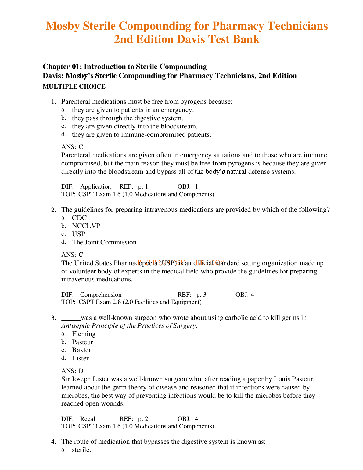 mosby sterile compounding for pharmacy technicians 2nd edition davis test bank. download on www.leakedexams.com instantl...