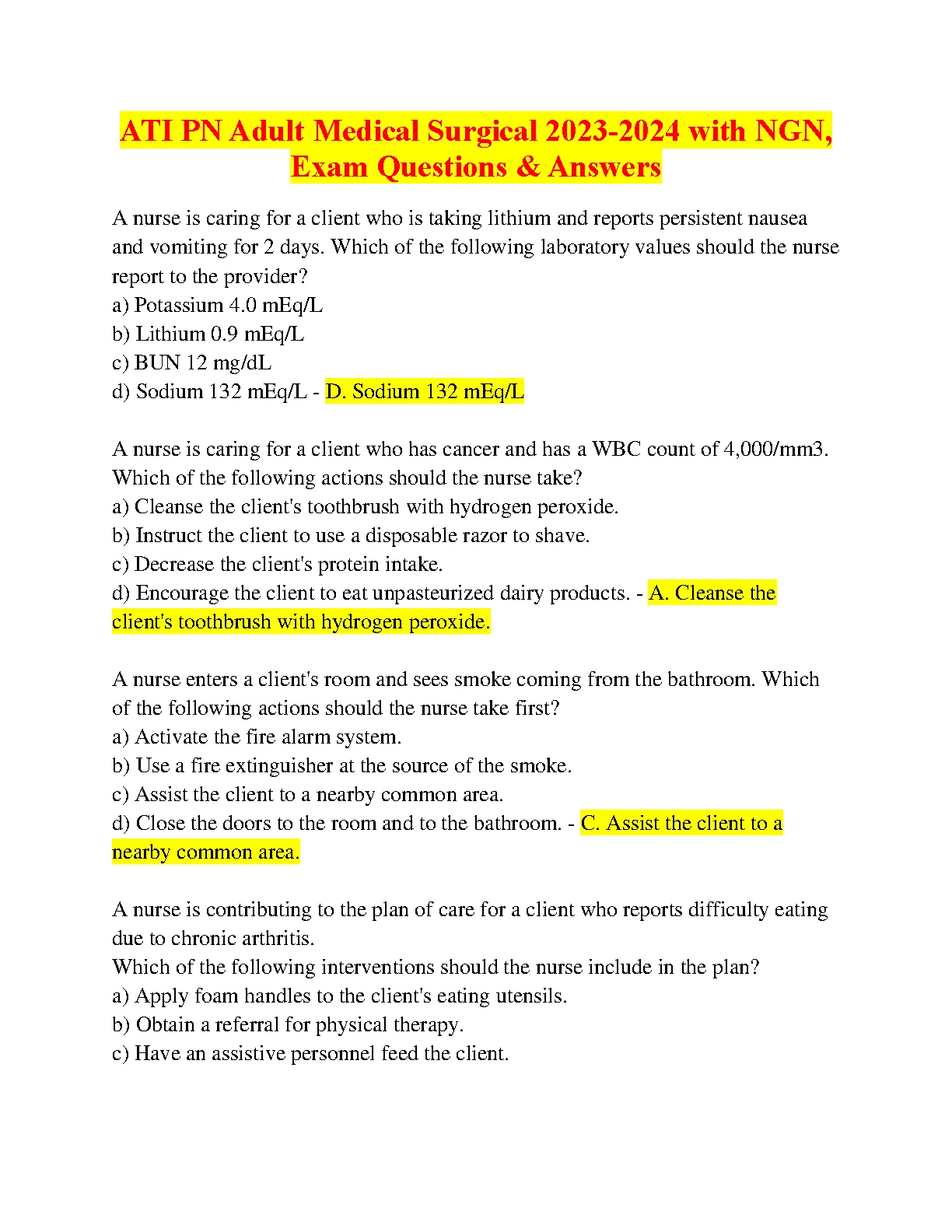 ATI PN Adult Medical Surgical 2023-2024 with NGN, Exam Questions & Answers. ATI PN Adult Medical Surgical 2023-2024 with NGN, Exam Questions & Answers ATI