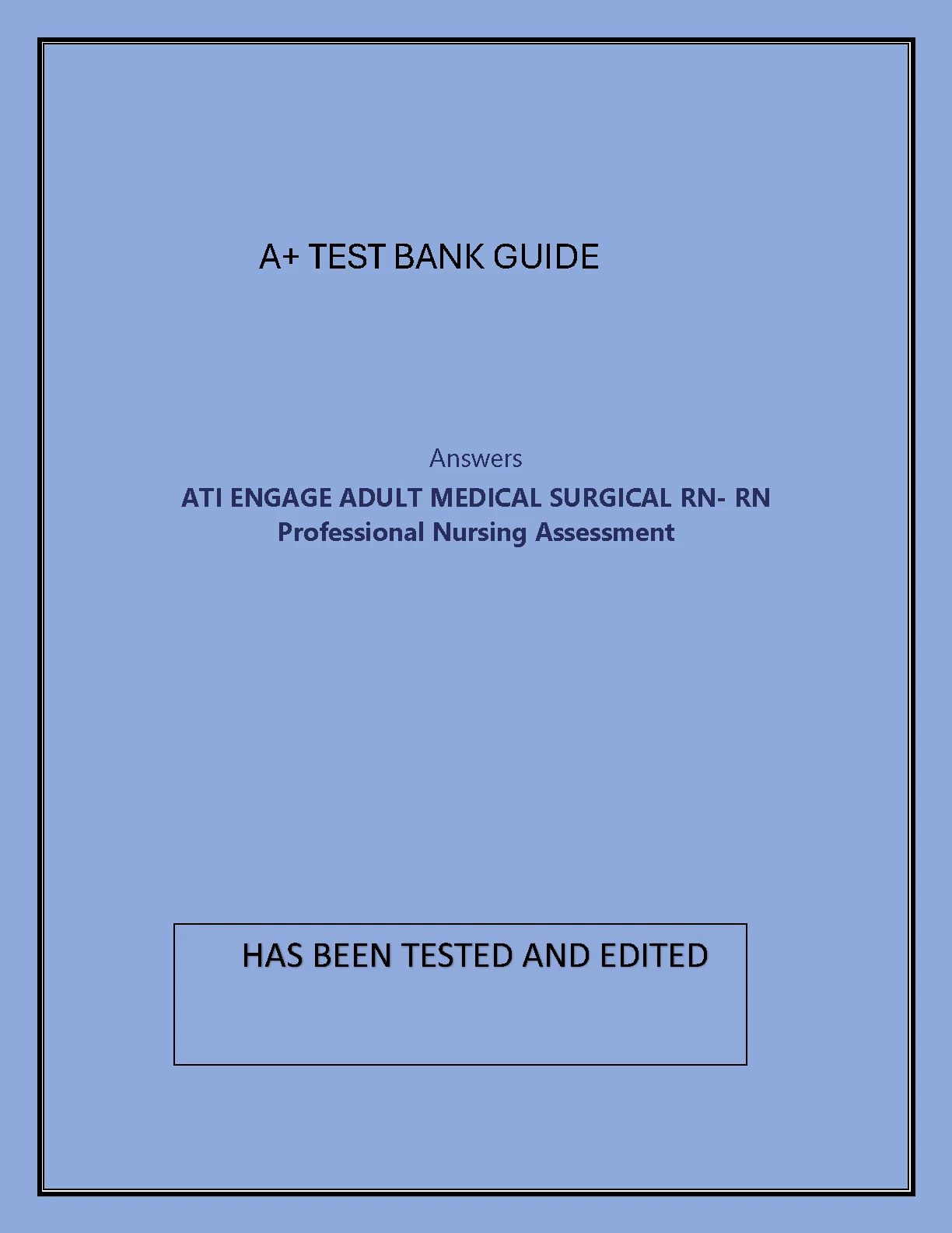 A+ TEST BANK GUIDE Answers ATI ENGAGE ADULT MEDICAL SURGICAL RN- RN Professional Nursing Assessment 2024. A+ TEST BANK GUIDE Answers ATI ENGAGE ADULT MEDICAL SURGICAL RN- RN Professional Nursing Assessment 2024 ATI