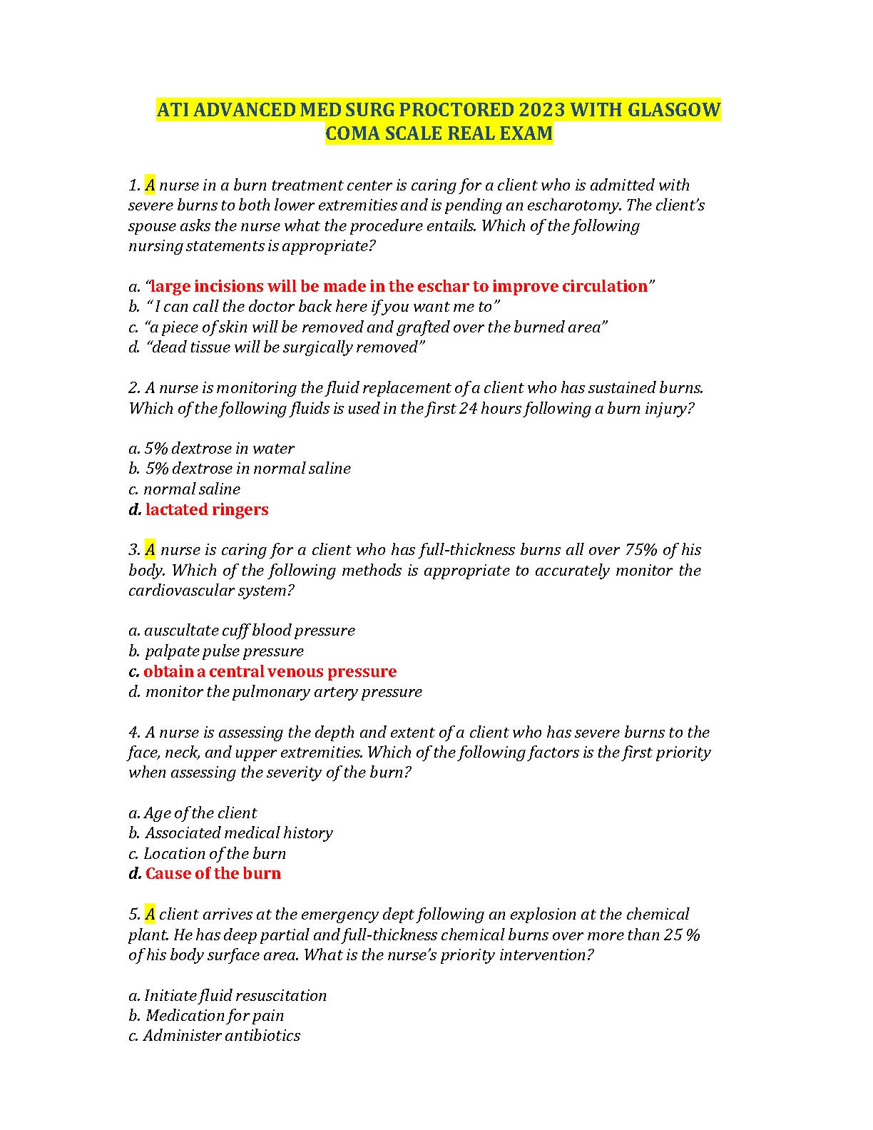 ATI ADVANCED MED SURG PROCTORED 2023 WITH GLASGOW COMA SCALE REAL EXAM. ATI ADVANCED MED SURG PROCTORED 2023 WITH GLASGOW COMA SCALE REAL EXAM ATI