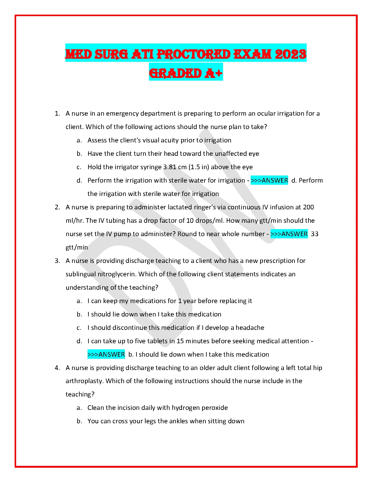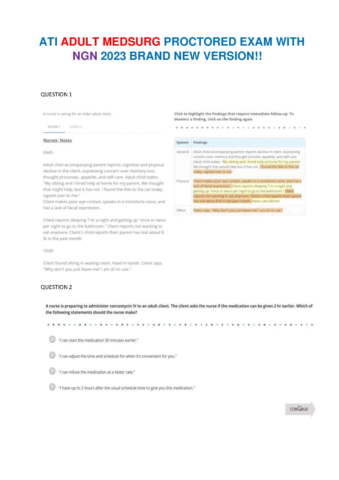 ATI ADULT MEDSURG PROCTORED EXAM WITH NGN 2023 BRAND NEW VERSION!!. ATI ADULT MEDSURG PROCTORED EXAM WITH NGN 2023 BRAND NEW VERSION!! ATI
