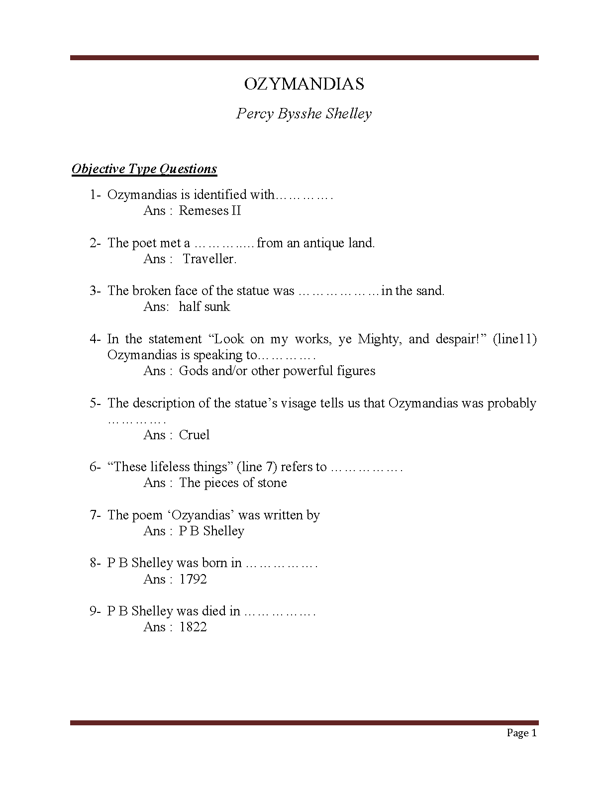 ace your exams with this in-depth guide to percy bysshe shelley's ozymandias. this resource provides a complete analysis...